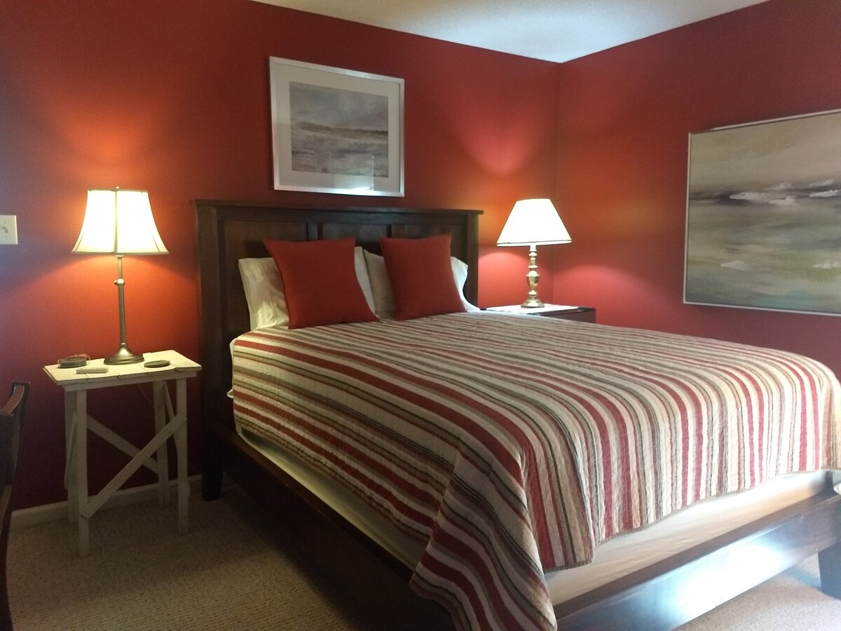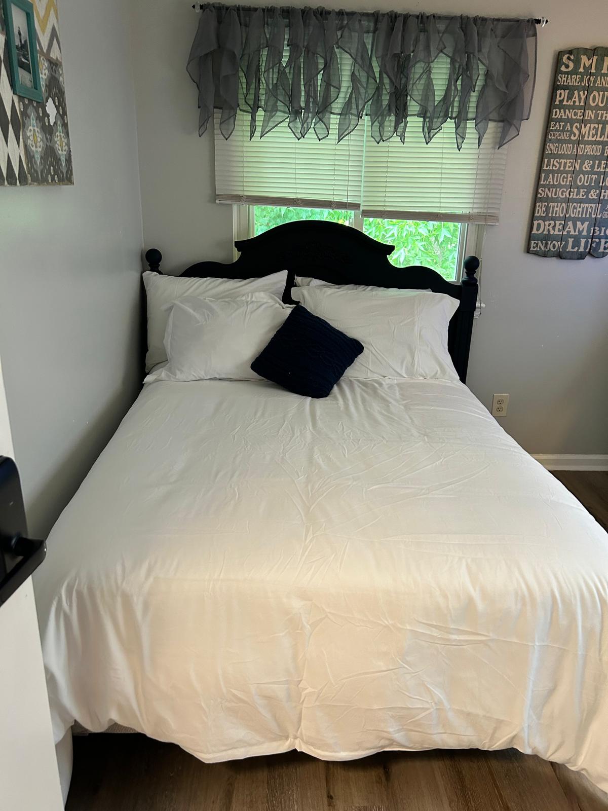 The TV has Roku box that gets many different networks. The bed has a TempurPedic mattress topper to make the bed extra comfortable, as well as a down comforter, and fresh linens. There’s a nightstand for your belongings, in addition to a closet.