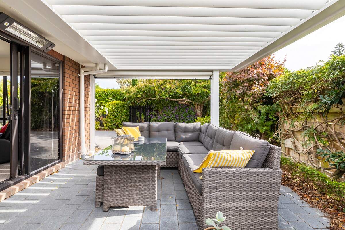 The Tennis Pavilion is a sunny and spacious bach just one house back from the beach and adjacent to Longshore beach house. Ranchsliders open onto an all-weather tennis court on one side and onto small private and open patio areas under timber pergolas on the other three sides.