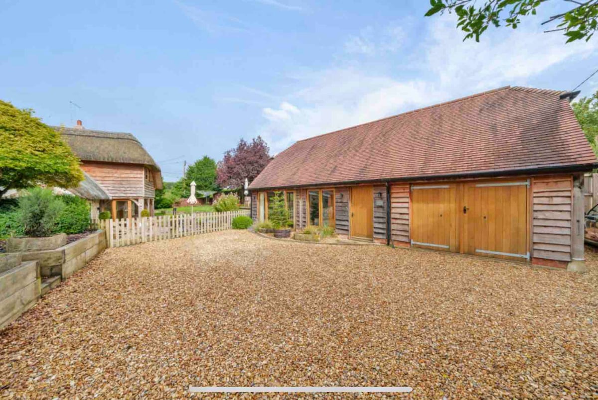 This is our beautiful, self catering Barn in the heart of Sherrington Village, within the gardens of our 1720s thatched home "Cress Cottage", "an area of outstanding natural beauty" over looking the watercress pond and surrounded by open countryside, rivers and wildlife.