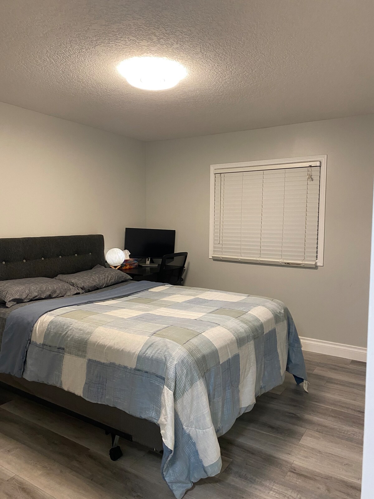 🛏️ Relax in a cozy queen-size bed and stay productive with a big arranged desk in a cozy and spacious bedroom.