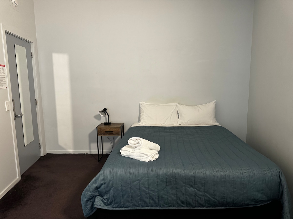 Welcome to Stay at 107 in Wellington! Our private double rooms offer a comfy queen bed, TV, desk, and clothing rack. Fresh linens and towels are provided. Explore communal spaces with two kitchens, a lounge/dining area, lockers, and a coin laundry. Your comfort is our priority. Book now for an unforgettable Wellington experience!