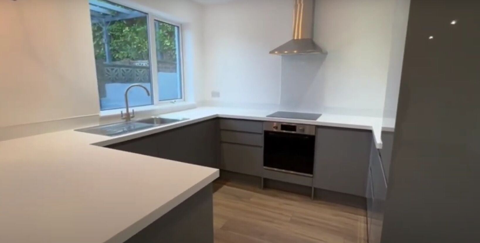 Into the hallway with kitchen and stairs leading to the first floor and on into the spacious lounge/diner.