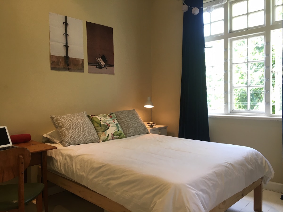 A bright and airy shared room (the price is for one bed) with two single beds in a renovated Victorian home from 1927, with high ceilings, private desk inside the bedroom and generous built-in cupboard space.