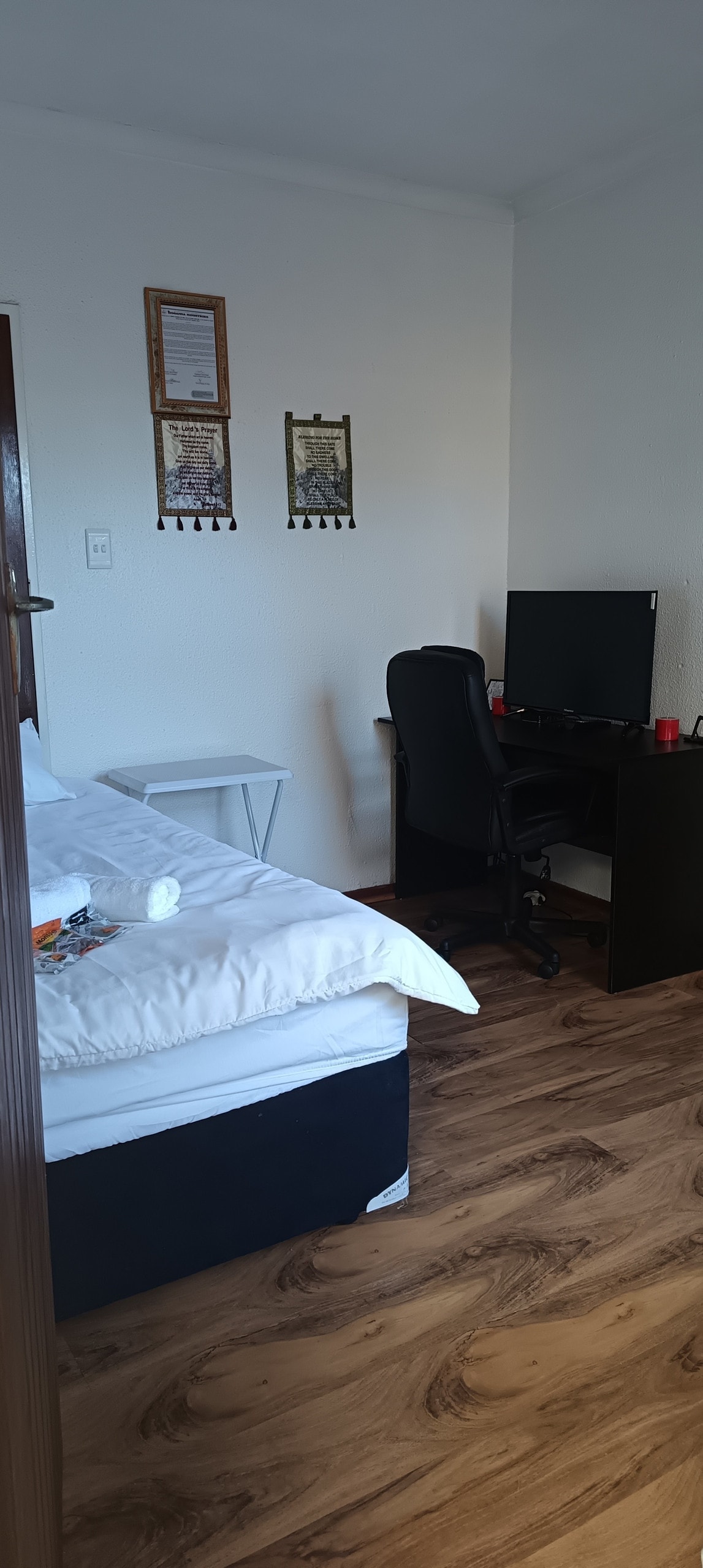 The room is only for ONE guest. The on-suite bathroom has a shower. The kitchenette is equipped with a mini-fridge, 2-plate stove, microwave, tea- and coffee-making facilities, and cutlery. Wifi Internet access is available. TV with Netflix and SABC.