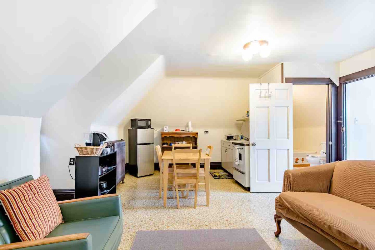 This private space comes with a queen-sized bed, double sized sleeper sofa, fire pit access, outdoor patio, AC, mini fridge, microwave, coffee machine and coffee. On site parking available. See amenities for full listing.