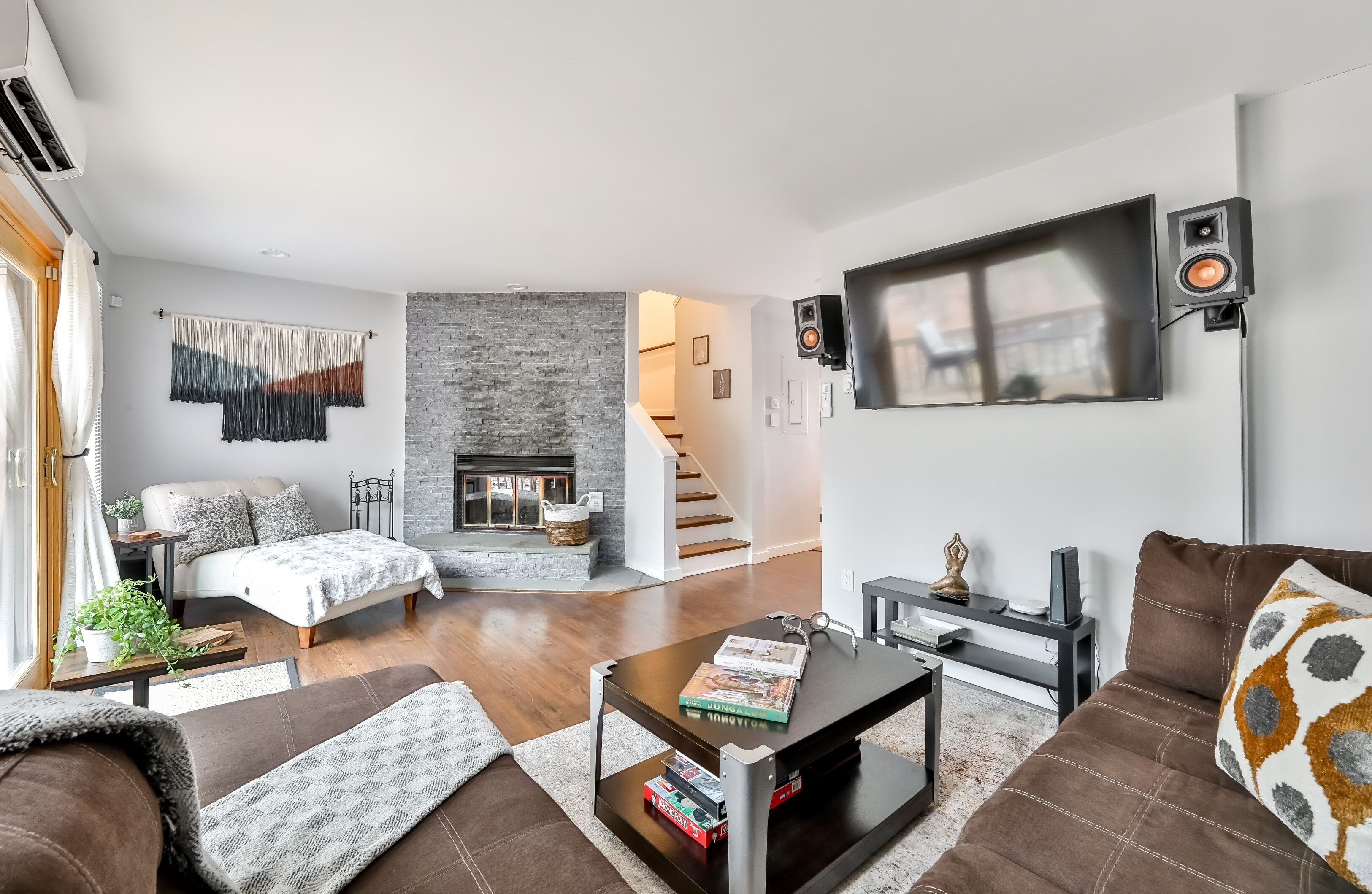 Amazing 2 floor spacious getaway with A/C just minutes away from Windham Mountain ski resort, hiking trails, and great restaurants. Family friendly home with a large inviting living room, 2 spacious bedrooms, 2 full bathrooms and wood burning fireplace. Updated kitchen appliances, super-fast Wi-Fi and 3 smart TV's. Many extras including parking, 2 tennis courts, swimming pool and firepit. BBQ Grill on private back deck with scenic views. Winter season rentals preferred during Dec - March.