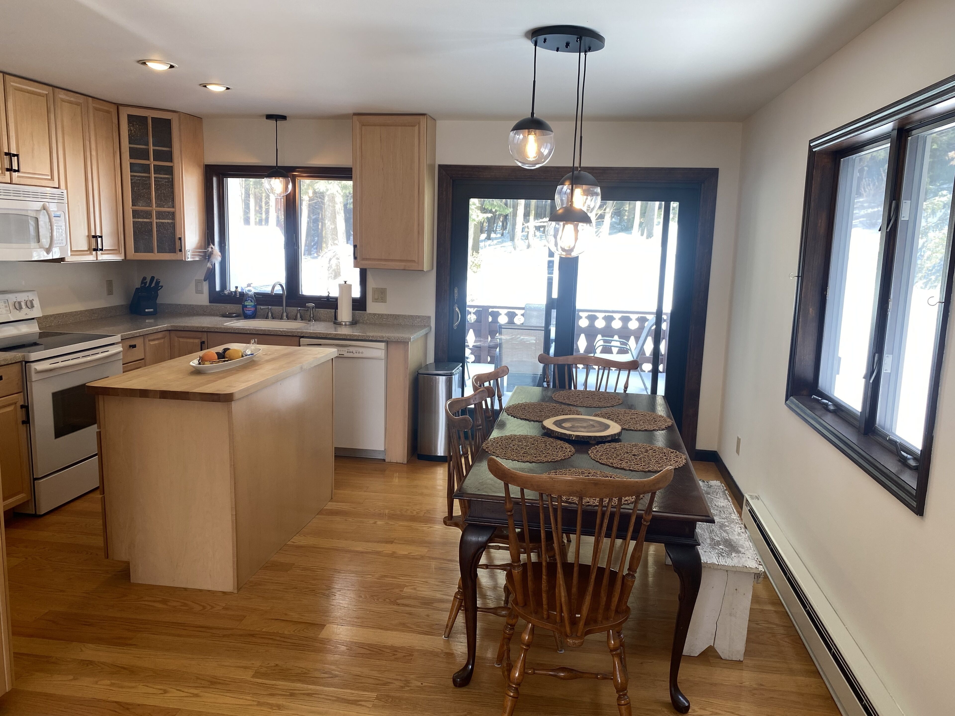 Our house is architecturally exciting - south facing curved windows provide a panoramic view of Windham ski mountain with plenty of sun throughout the day. Opening the second floor door is a south-facing porch with spectacular view and is equipped with a gas grill and an automatic awning for shade. The highly functional kitchen comes with a newly installed dishwasher and many small cooking appliances including waffle maker, air fryer and instant pot. We keep many ingredients and spices for both western and Asian cooking.