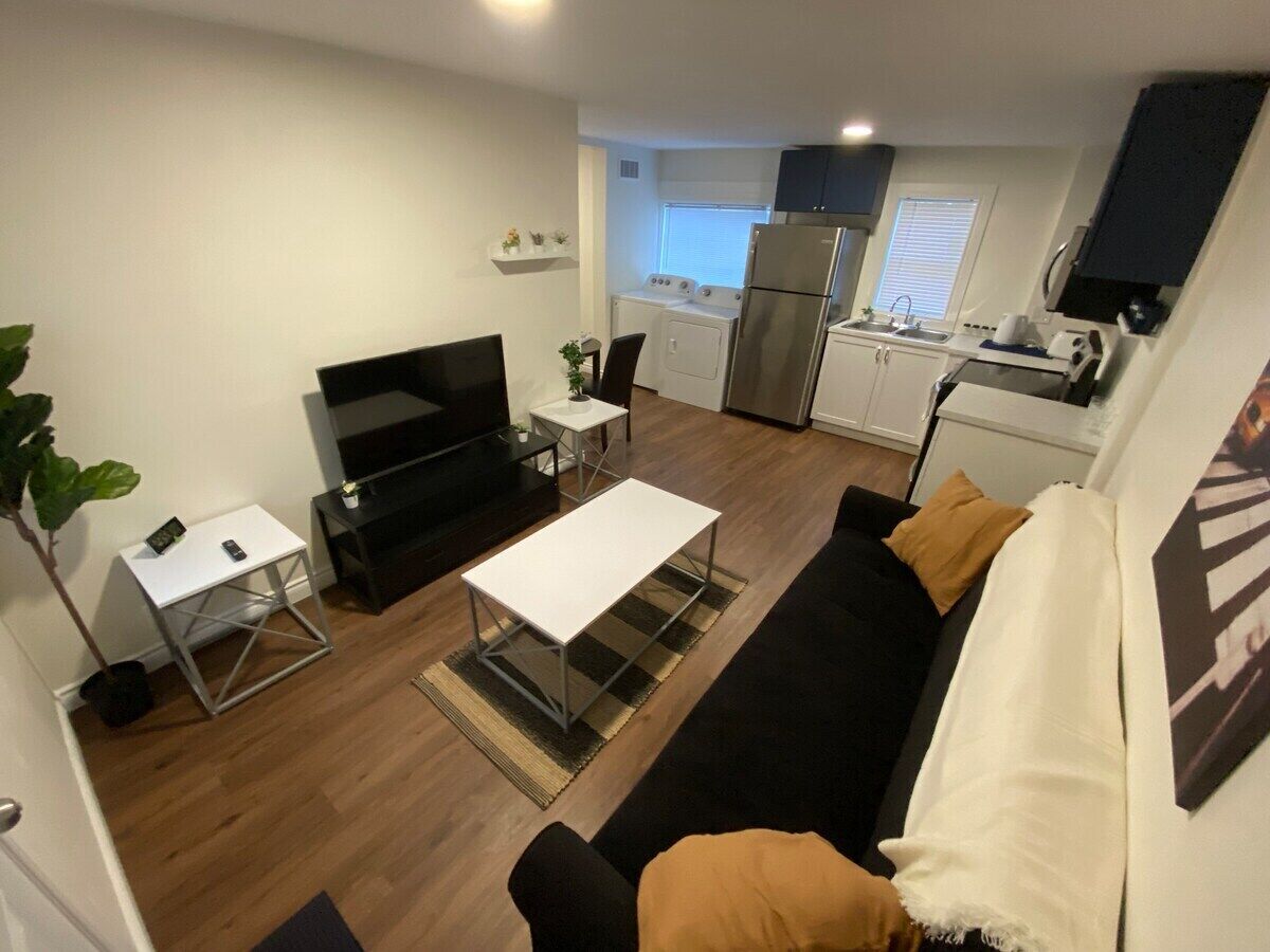 Features include a spacious eat in kitchen with brand new stainless steel fridge and stove with granite countertops, 1 full bathrooms with bathtubs and showers, spacious living room with TV with Netflix and Android TV and 2 spacious bedrooms with queen beds and closet space. All the necessities are provided.