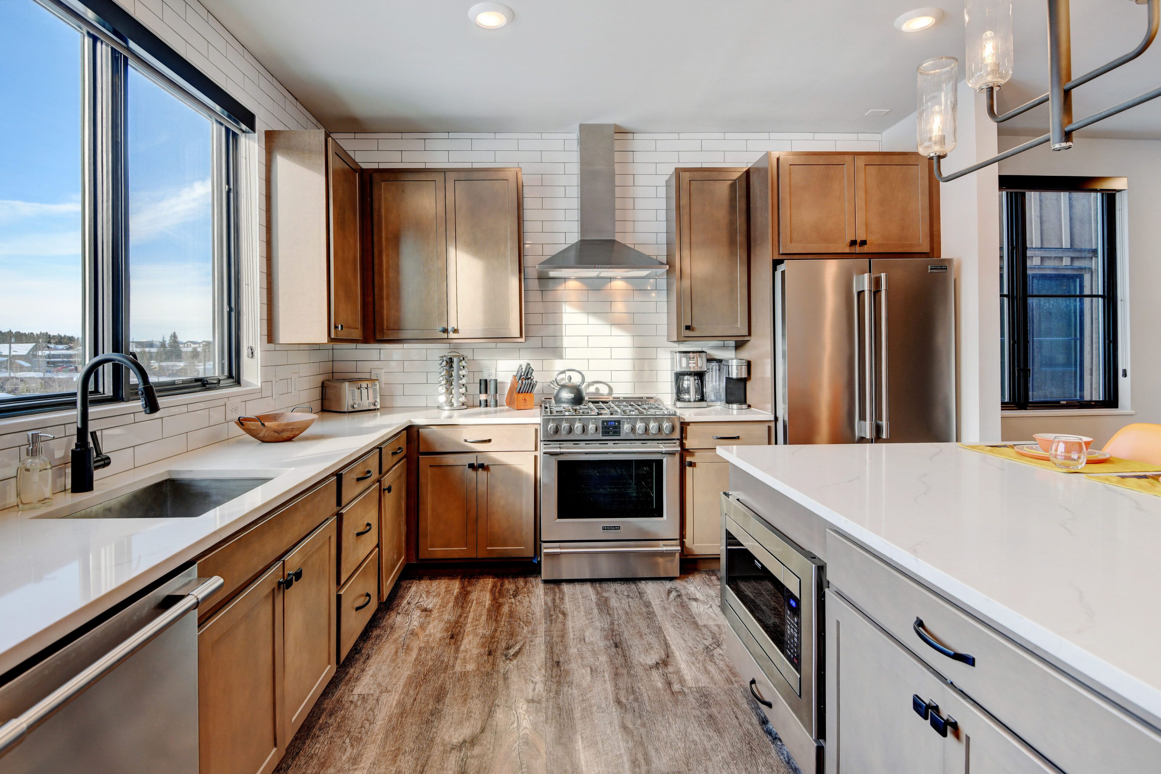 Radiant heat floors will keep you and your feet warm on cold mornings and your car warm and ice free in the connected private garage. The steamer in the master suite shower will melt away the aches and pains from a long day on the mountain or just shopping and dining in town. Set up is also convenient for multi-generational families or multiple families as the set up provides private spaces to get away from the group for a bit.