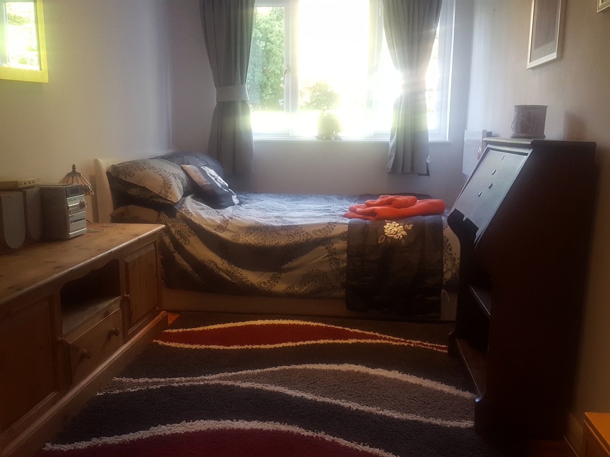 Private bedroom with shared bathroom & kitchen which you may use for breakfast and preparation of light meals and ready meals, use of washing machine.