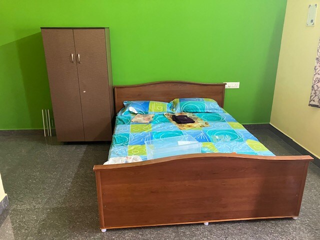 shreeyaas ground floor suite is a brand new single bedroom suite which consists of a sitout facing the garden,A living with attached bath,A spacious bedroom with attached bath along with 2 kings size cots.Tv,geysers,induction are provided in the suite.swing,hammock gives you thorough enjoyment.Book in advance and enjoy your stay