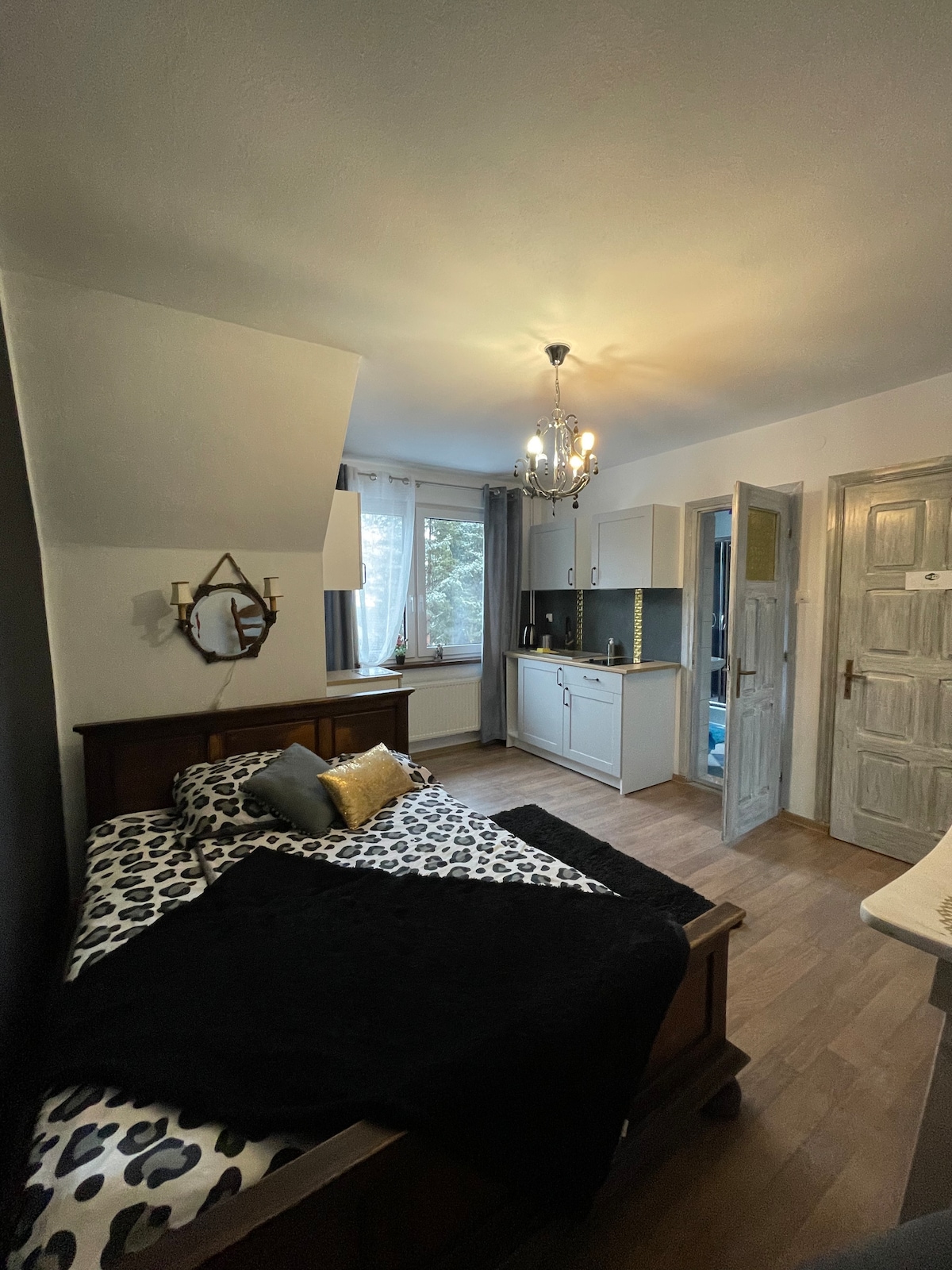 We also have a studio room with a separate kitchenette and bathroom. Depending on the expectations of the clients, you can rent the entire attic of the house for up to 5 people or individual rooms.