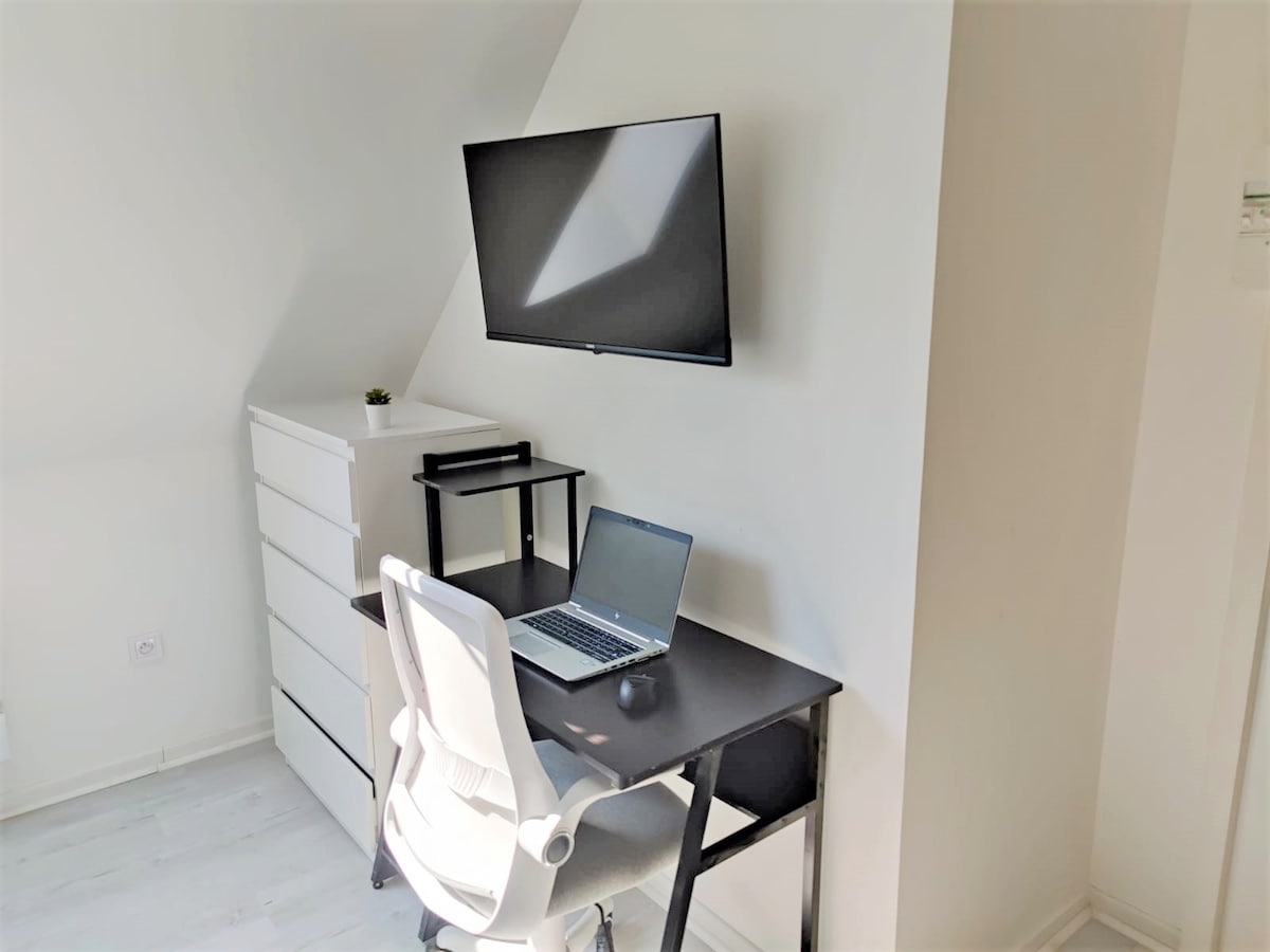 Each room is equipped with comfortable bedding (120x190), a workspace with a desk, dressing room and wifi access. Only the living room is equipped with a TV for lively evenings between occupants.