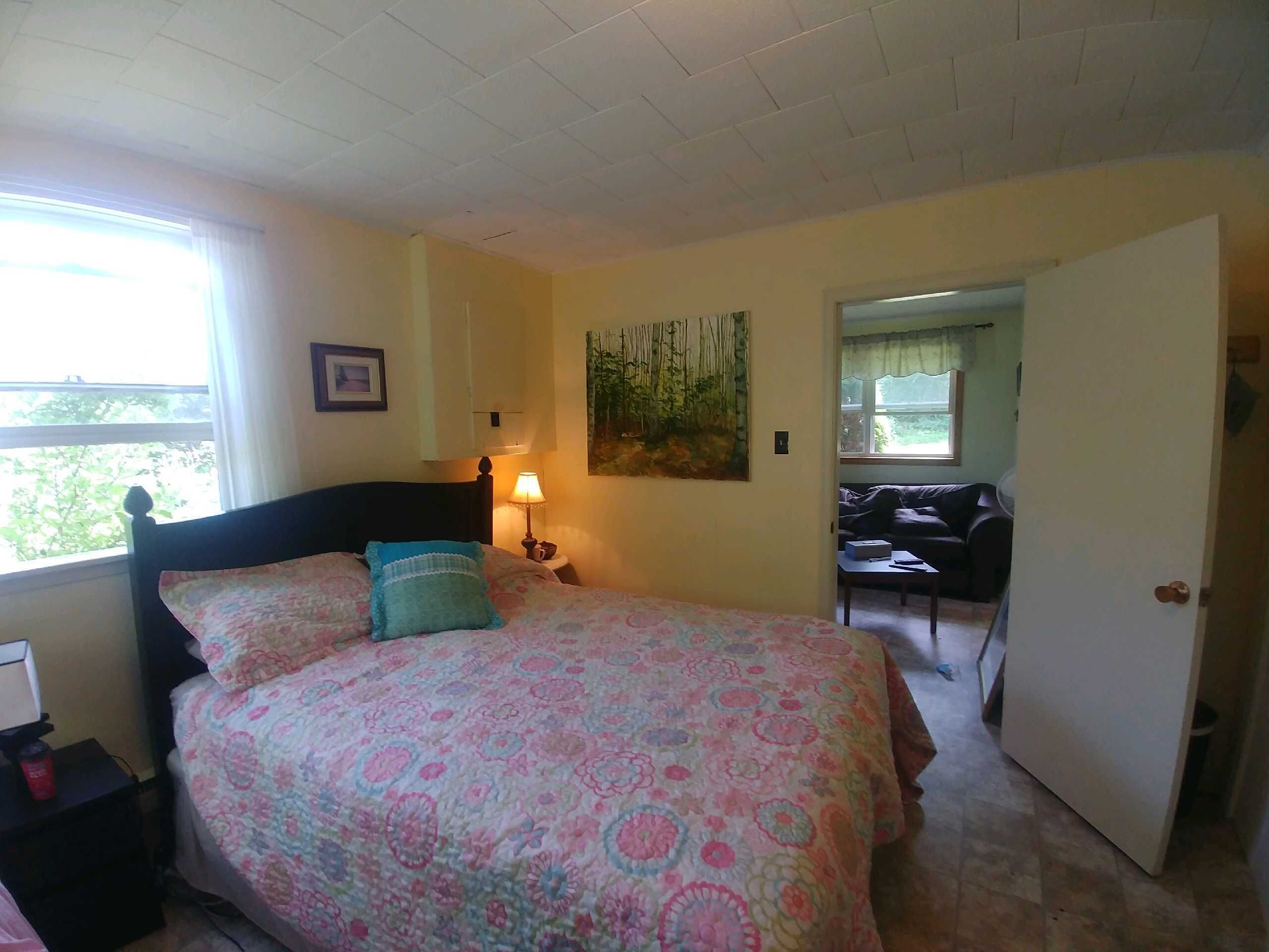 The main floor of the house is beautiful hardwood flooring, fully furnished and equipped with all modern appliances. It has a complete kitchen with 2 exits to a large, 2 level outdoor deck. Washer and dryer are also included as well as a deep freezer. Two Bedrooms are located on the main level and one is located on the second floor. There is a basement with a spare bed and woodstove.