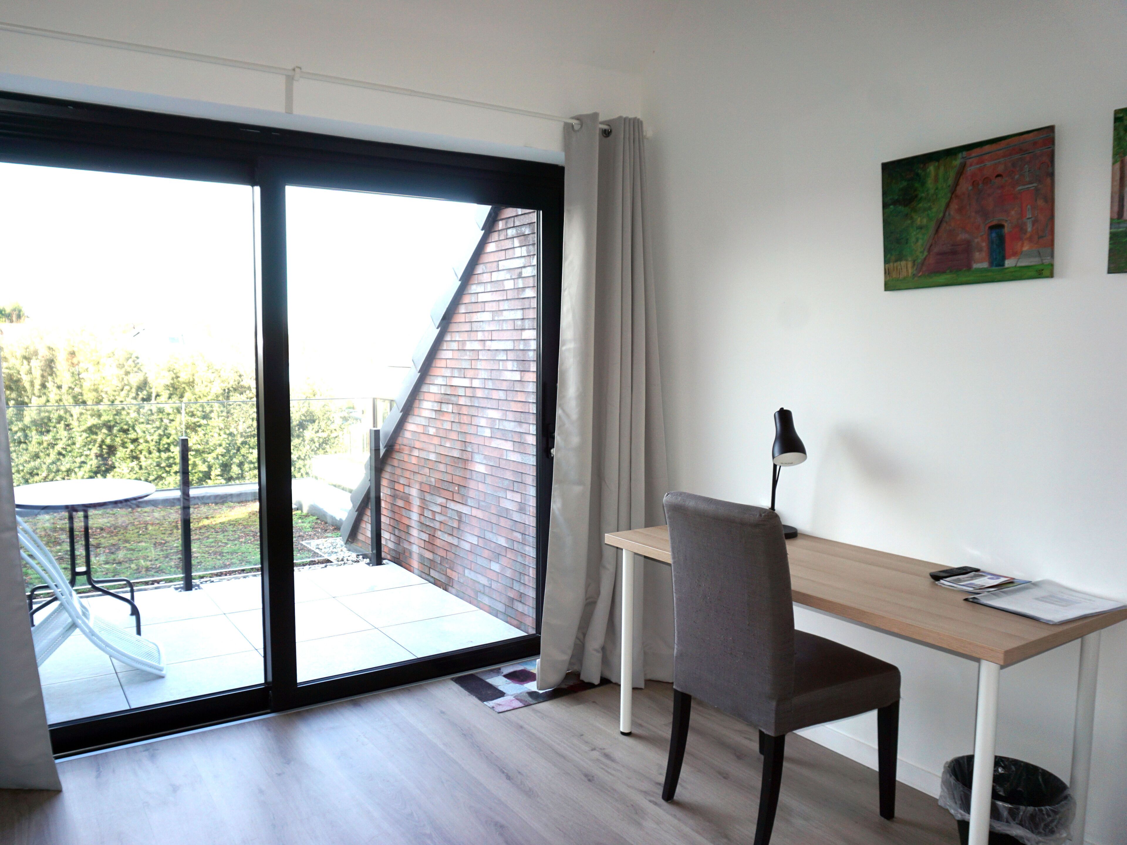 I live in the ground floor house . One house has a lot of light, large windows. I live in a natural, quiet area with lots of walking and cycling opportunities. Large garden available. one street opens onto river Schelde.a hiking junction one passes house. Beautiful park and castle d'ursel in walking distance.