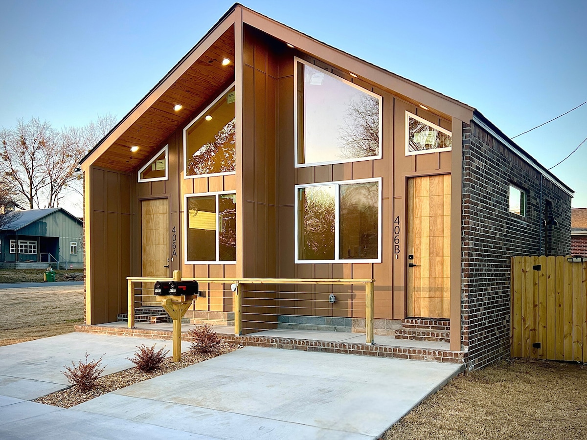 Near biking trails, shops, live music, and restaurants in Historic Downtown Rogers!
