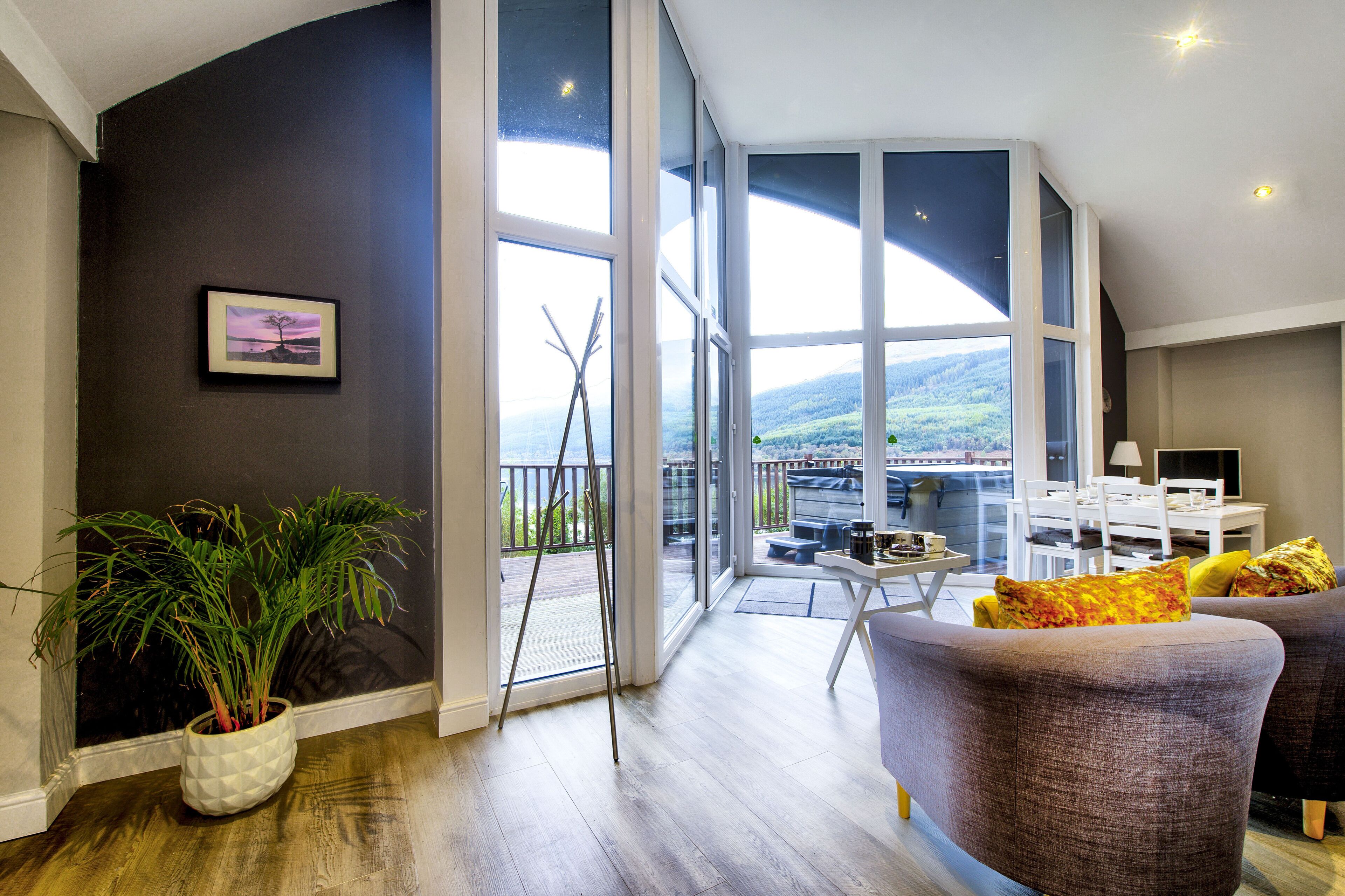 The kitchen & dining room offer stunning views of Arrochar with a hot tub in the garden.