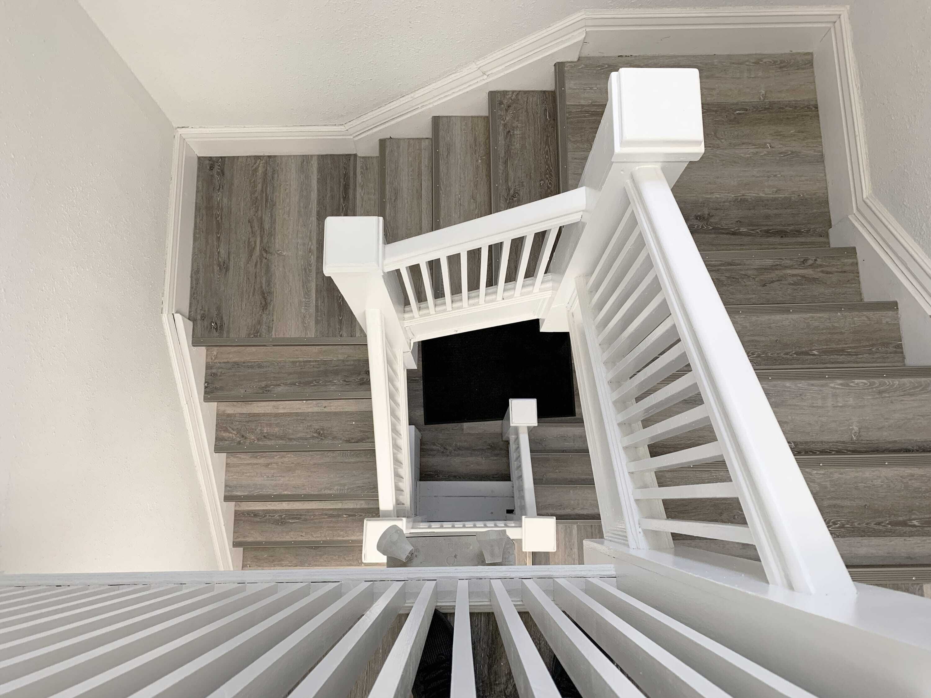 The top floor entry to the 3rd level is a shorter flight of stairs opening into the 3rd & 4th bedroom on either side of the stairwell. There is a King bed on one side & a double bed on the other. These rooms are not separated by a curtain. This loft space has its own AC system.