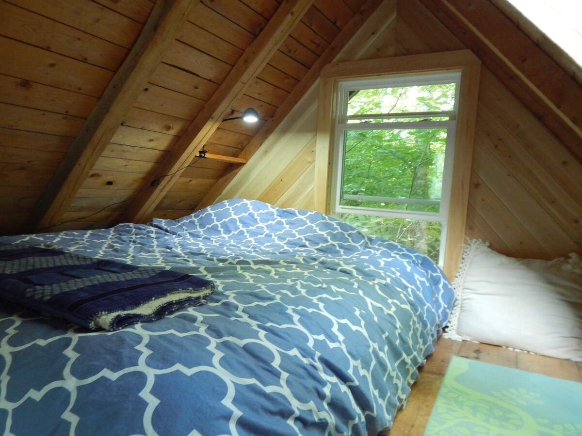 The blueberry cabin is a one room space perfect for 2 guests. The space is 12' x 16' with a double bed with comfortable bedding, a small kitchenette equipped with pots, pans and dishes, a 2 burner propane stove for cooking simple meals, a cooler for storing your food in (please provide your own ice) and 5 gallons of clean, potable water. Refills available as needed. There is a private outhouse right next to the cabin. There is a small solar shower available in the summer months only. There is plenty of kindling and firewood for running the wood stove during the colder months. The cabin has large windows that face south, east and west. Prepare for early morning sunshine flooding in. At night there are a few solar powered lanterns that provide soft, low light for a cozy, romantic feel. Many guests have commented on seeing the stars and moonrise on clear nights staying at the cabin.