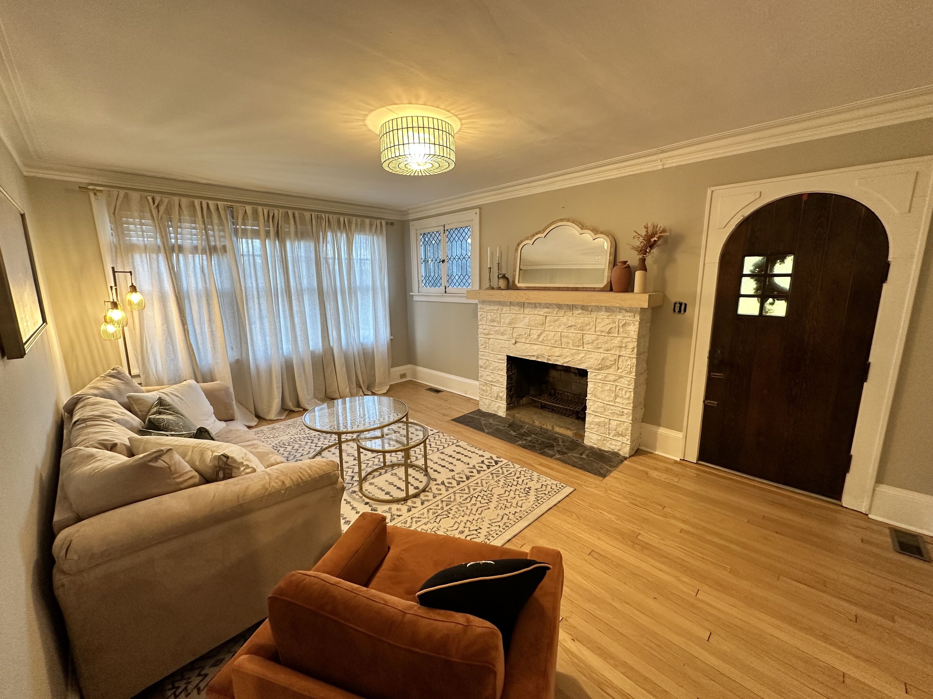 Our peaceful, quiet home is a completely remodeled, ranch style house. It offers upscale finishes, handmade tile backsplash, comfortable furniture & walls covered in unique handmade art. Our home has tons of natural light, modern amenities, fully outfitted kitchen, beautiful picture windows, luxury vinyl floors, large walk in tile shower. Cozy fireplace in the living room. Located less than .5 miles to downtown. Minutes from major hwys, shopping, dining & outdoor recreation.