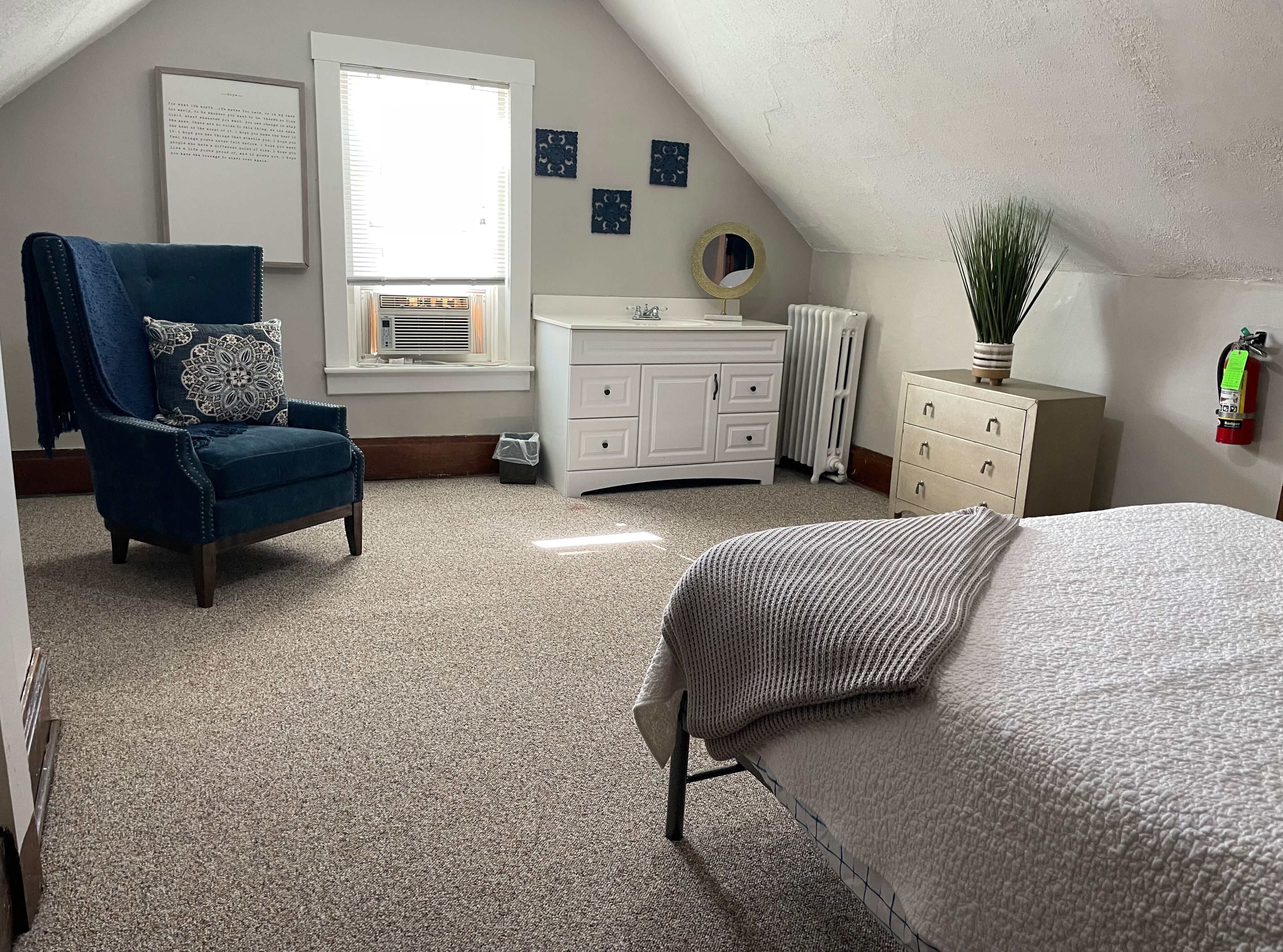 Forget something? I’ve got you covered with tooth brush and paste, hair dryer, washing soaps, iron and coffee/tea, half & half and sugar.. If you need something more, Ickes Drug store is across the street, and the Dollar Store is around the corner on Pitt St.