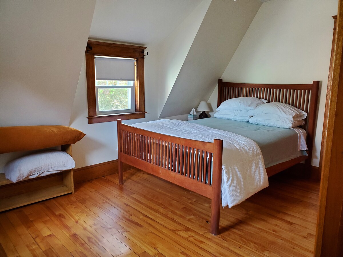 This space offers two bedrooms, sleeps up to 5. Front bedroom, Bird song, with comfortable queen bed, TV with Roku and a/c. The Toboggan room has a bunk bed, full on bottom, single top and window fan. a/c available on request for the Toboggan room. Comfortable living room with a/c on the first floor with a hot/cold water bubbler, fridge, microwave and coffee maker. Laundry available Fantastic in town location. Easy street parking for 2 cars. Walk to restaurants, shops and waterfront. Belfast is a beautiful town with fantastic shops, restaurants, farmers market on Friday and Saturday mornings, etc.