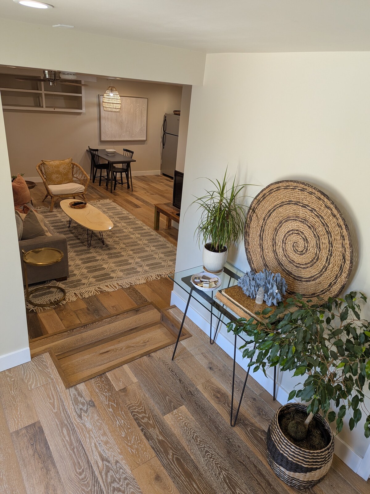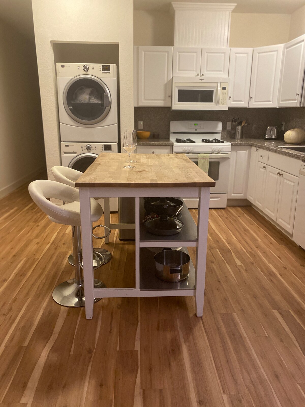 Fully furnished space comes with its own washer and dryer, cozy bedding and all needed to cook or simply order in for a relaxing evening, wifi to stream your favorite tunes or work from home.