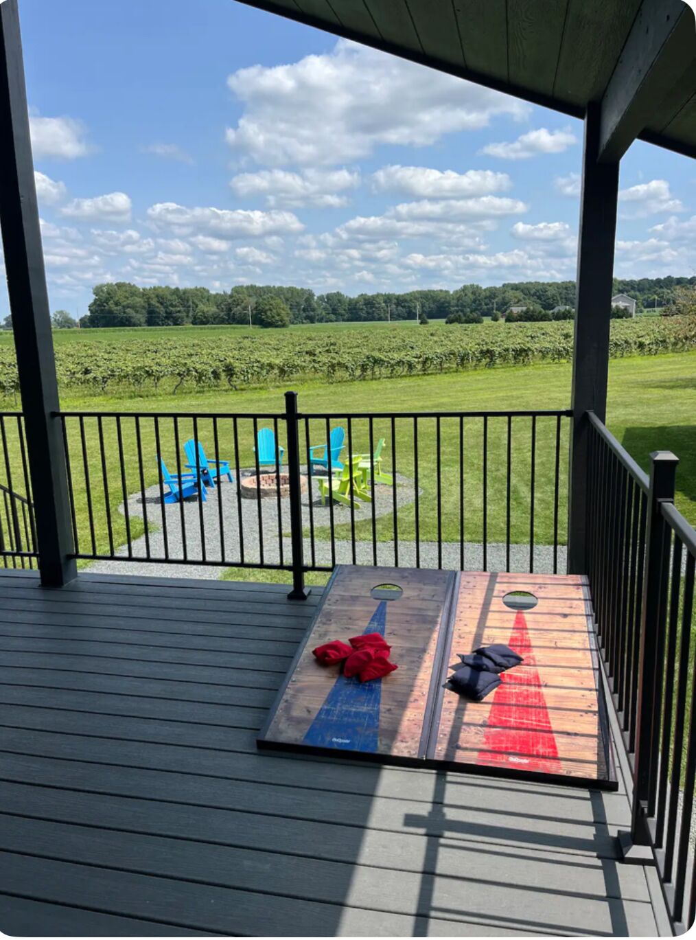 - This property is shared with a few other unique rentals—guests should not expect full seclusion. Rental unit, fire pit and corn toss are private, but rest of amenities are shared. (Pool is for the private use of Red House Guests only.)