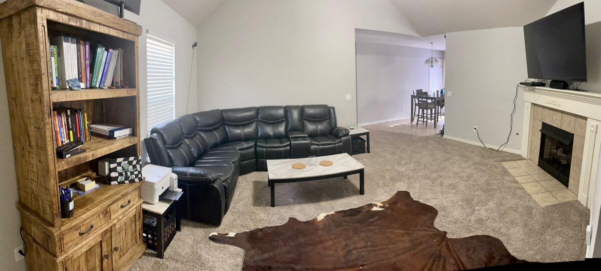 Room is outfitted with furniture for the needs of a long term stay. 50 inch smart Vizio TV. 2 Samsung monitors to work from home! Spacious walk-in closet. Living room with 65 inch TV, XBOX, and book case filled with interesting reads. Workstation and printer on site. Other rooms in house might be rented out as well. Located 15 minutes away from XNA airport, 8 minutes away from Walmart Home Office, 5 minutes away from Coler Mountain Bike Preserve.