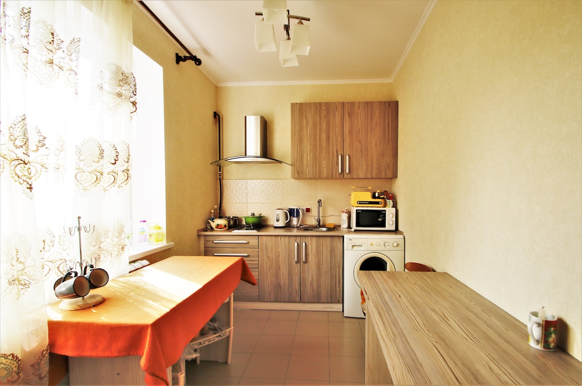 We're not in the city center, however, everything is within 10-15 min driving distance, and $3-4 cab price will get you across the whole town. You'll get full access to a private garden area. It's the perfect accommodation for your stay in Bishkek.