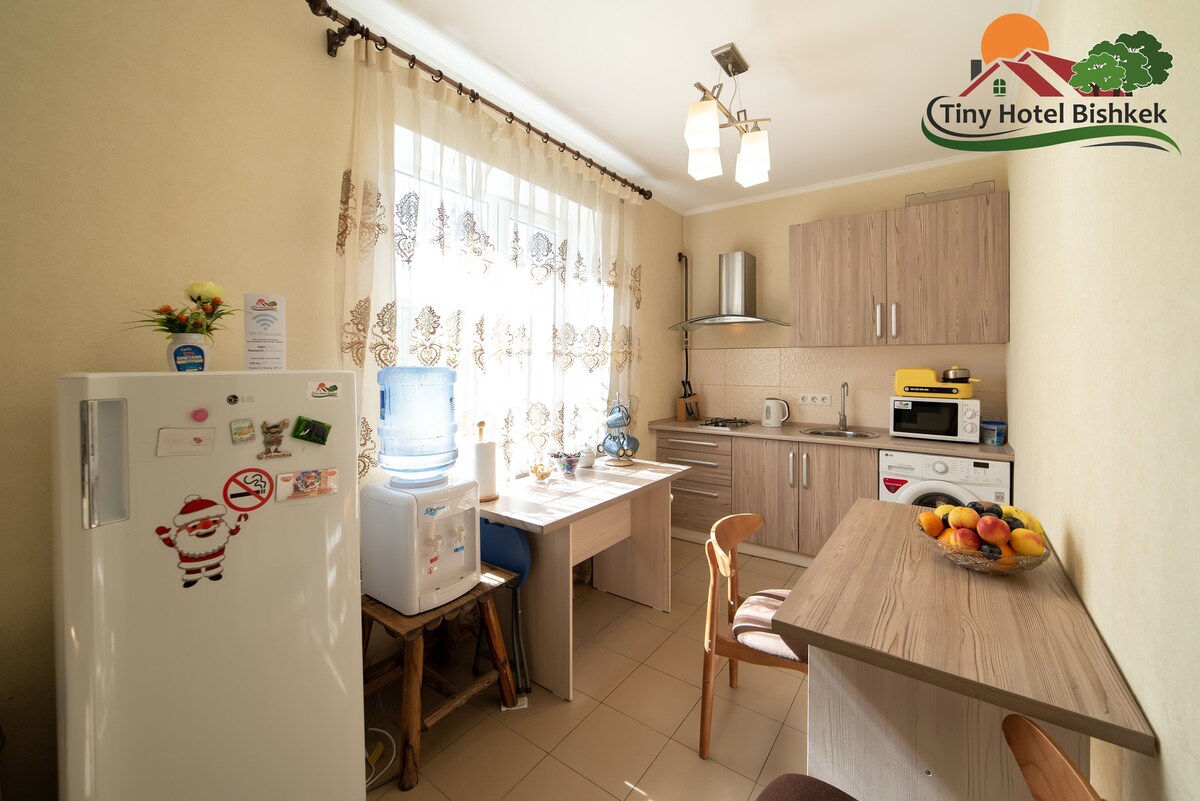We are a small cozy place in the south of Bishkek. This is a self-catered hotel-like accommodation. We will try our best to help you to have the best experience here in Bishkek. We have 5 more rooms here on Airbnb so check them out if you are a bigger group! (search Tiny Hotel Bishkek)