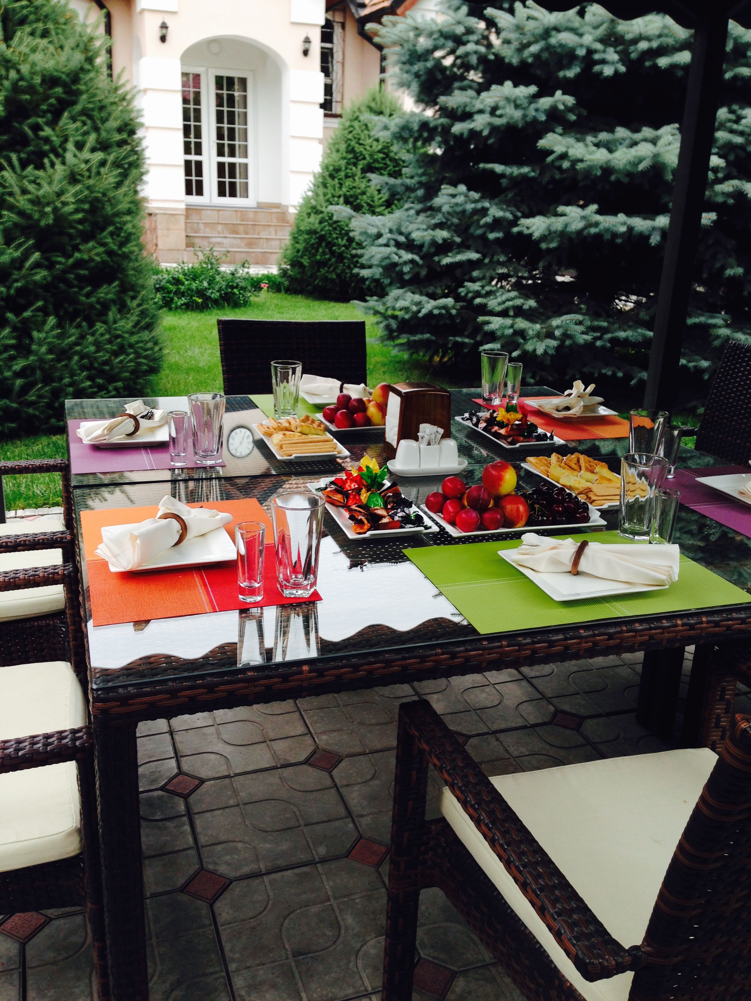 During warm seasons of the year, you are more than welcome to enjoy the lawn, the garden as well as our summer alcove / topchan.