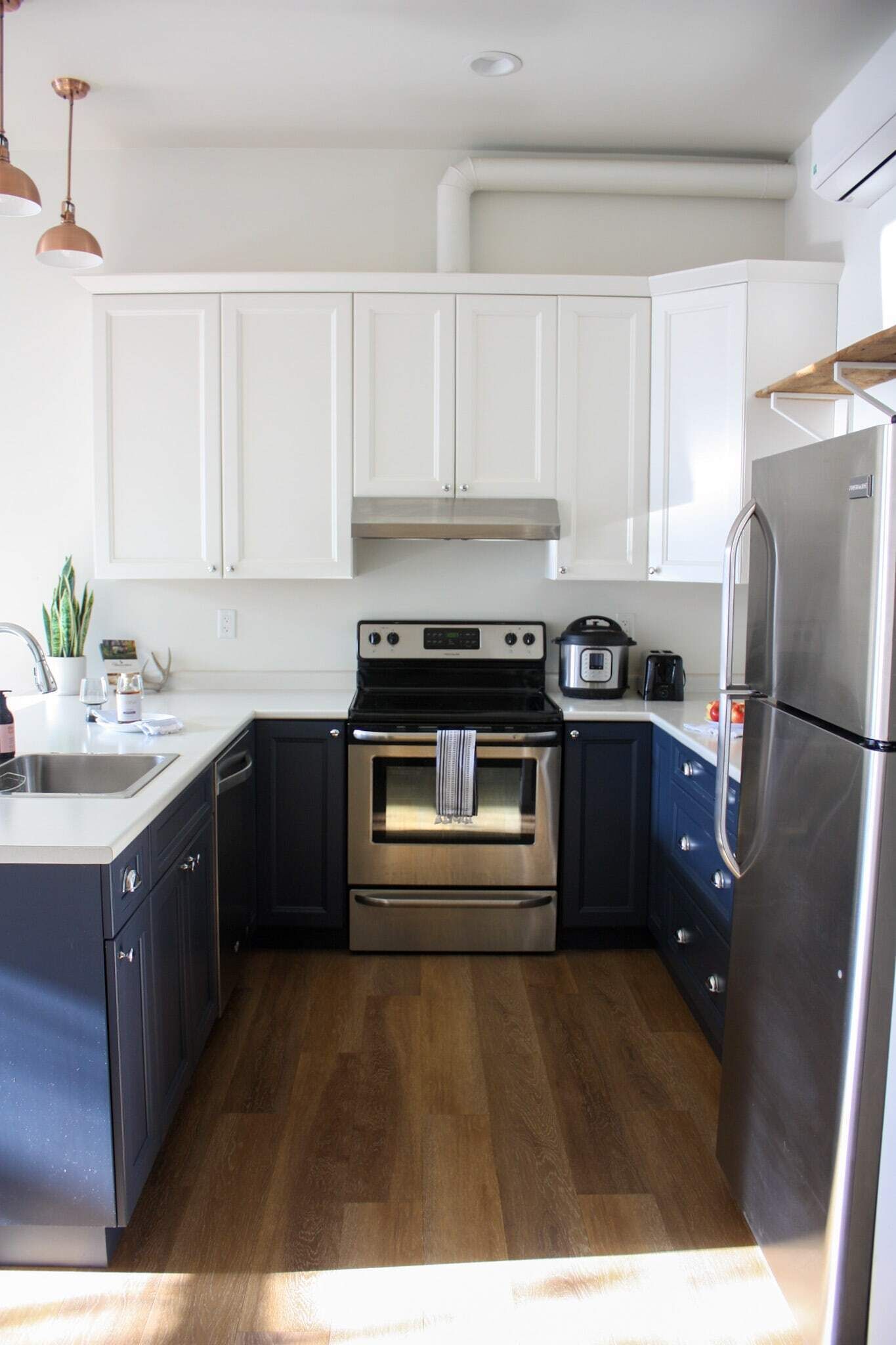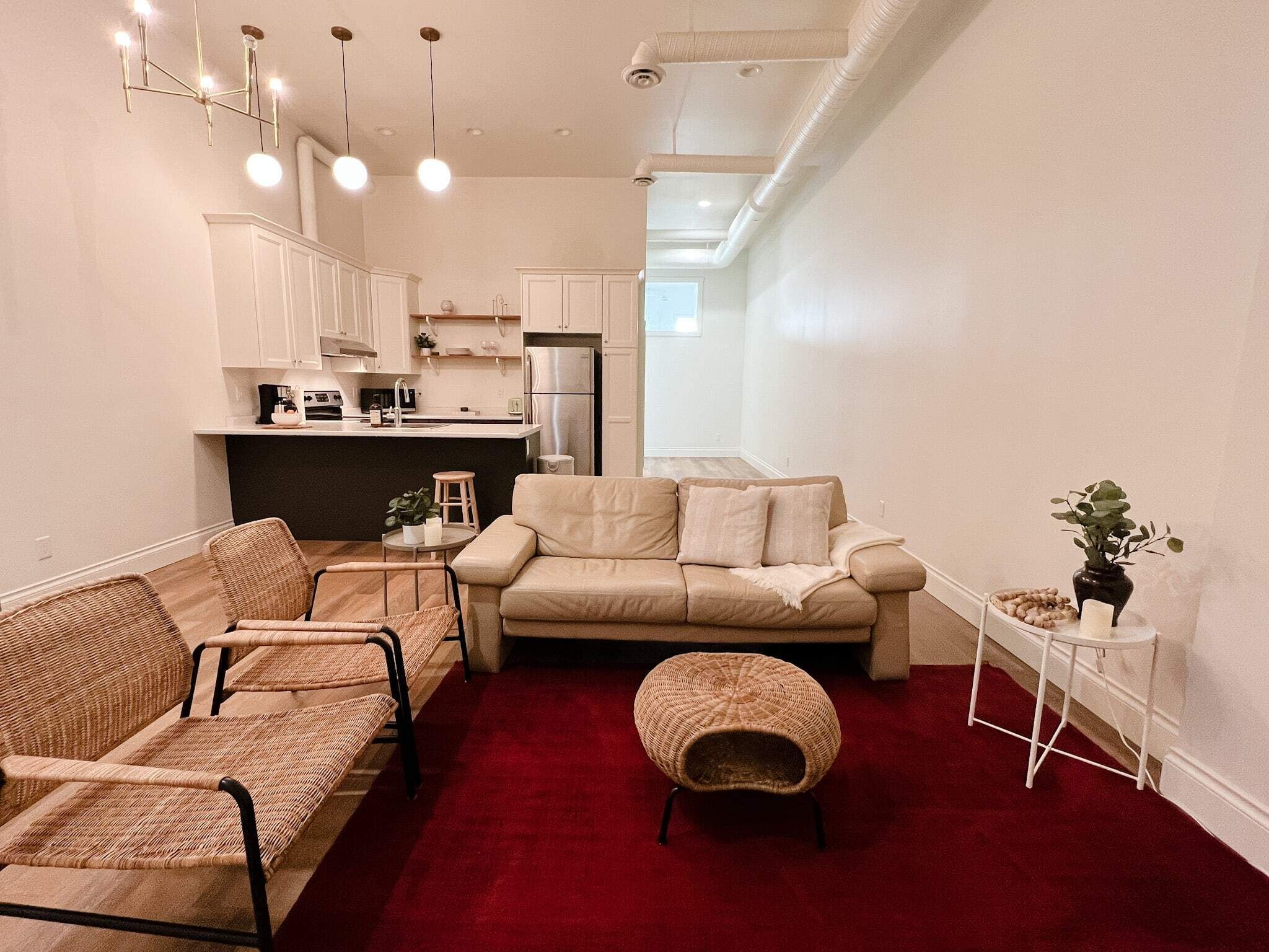 It's a cozy space with a full kitchen and bathroom as well.