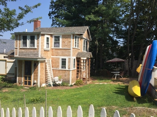 This comfy, family-friendly 4 bedroom house is year-round and 130 paces to the water - who can ask for more? Dine in with the fully equipped kitchen or take dinner at the shore or at one of the great nearby restaurants - amazing food and live music within 2 miles. Don't let the lack of curb appeal on the exterior scare you (we have big plans for it), but the interior of this original antique cottage was fully renovated in 2017 and ready for R&R with a spacious open floor plan and plenty of beds. Enjoy the great beach with enclosed swimming area, raft and diving board. First floor bedroom has a twin bed and faces the backyard and has easy access to the half bath. Upstairs is a large bedroom with two twin beds, a second bedroom with a twin bed and views of the water, and a large bedroom facing the front of the house with a queen bed and views of the water. In the main living area, there is a pull out sofa featuring a full sized bed. All linens provided including bath towels. Washer/Dryer. Beach chairs, kayak and life jackets. Gas grill. Cable and internet. Weekly trash pick-up. House also includes use of kayak, life jackets, 2 beach chairs, and outdoor patio table with chairs.