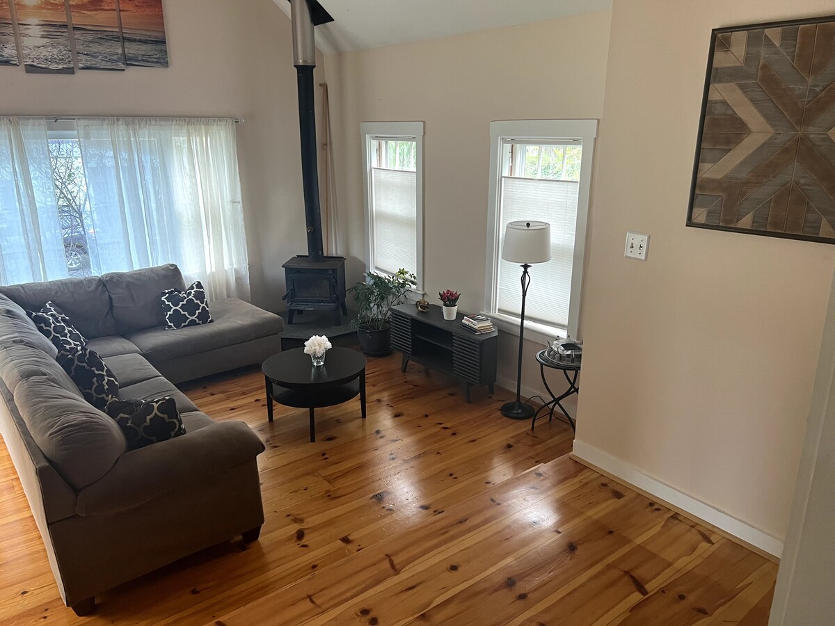 Park your car in our private lot and enjoy everything that Brattleboro has to offer. Relax in VT comfort in a huge bedroom with an electric fireplace and relaxing private front deck. New full bath and kitchen.