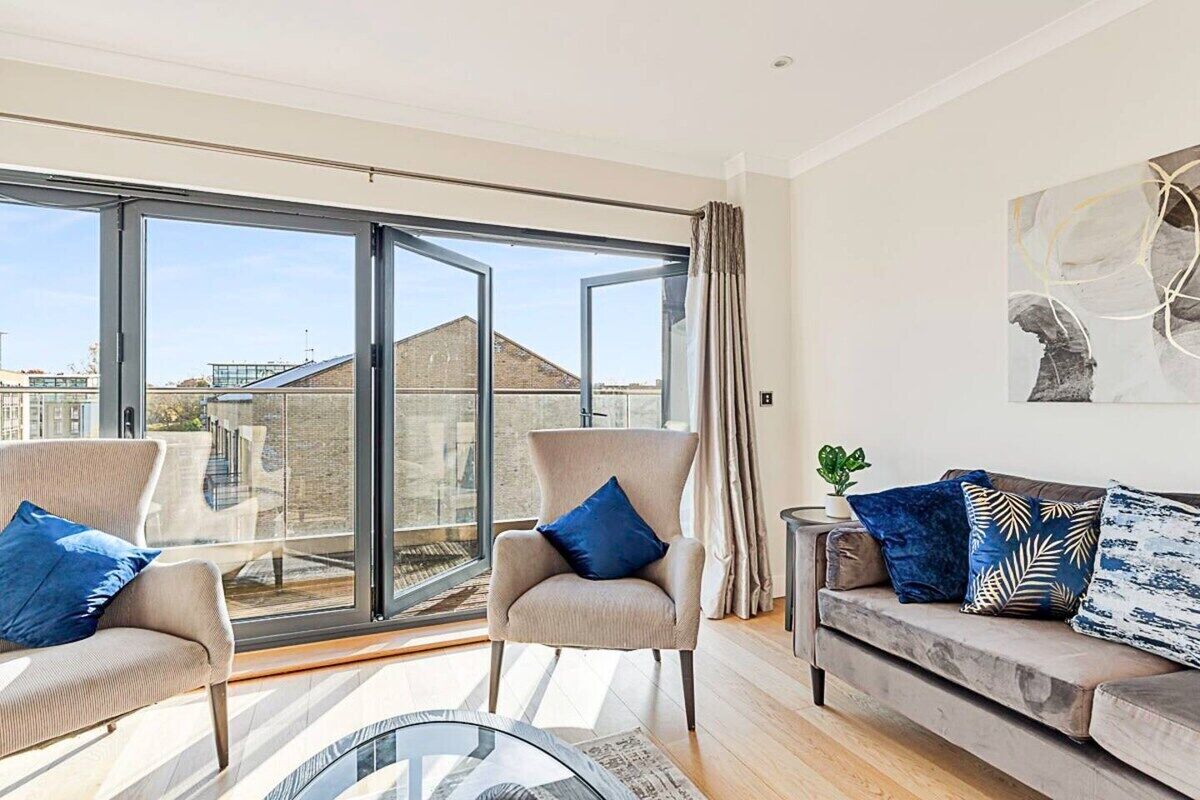 Experience pure luxury in this stunning 2-bed apartment. This exceptional property features an open-plan living/kitchen/dining room, a modern bathroom with walk-in shower & deep soaking Japanese bath, 2 kingsize bedrooms and a versatile garden studio which can be used as a 3rd bedroom (extra cost per person), or a dedicated workspace/utility. Bi-fold doors seamlessly connect the living area to a small garden for an indoor-outdoor lifestyle. Enjoy underfloor heating, AC, & high-tech amenities.