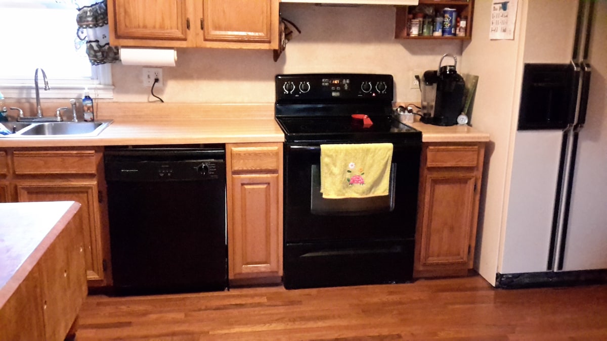 Out back, there is a deck with umbrella and a hammock on this one acre property where a creek runs. Homeowner is quiet and works from home; open to conversation or willing to give complete privacy. There is a door that encapsulates guest in privacy from the rest of the house, but talking, music & movies without earbuds, are disruptive between 10 p.m. and 6 a.m.