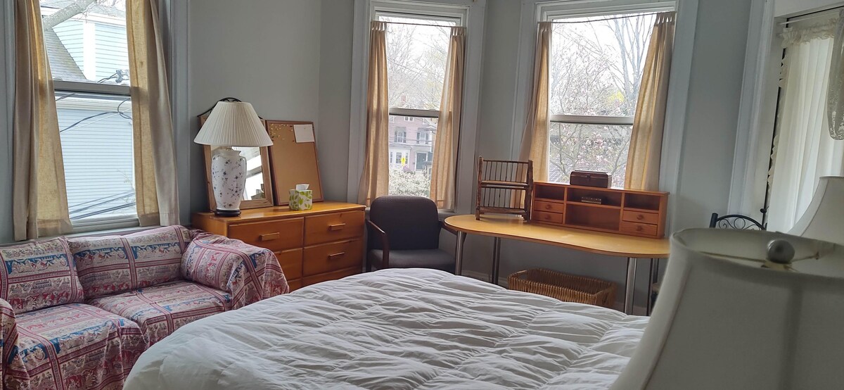 Bright, clean private room with tall ceilings, full height windows, in affluent Coolidge Corner/ North Brookline neighborhood.