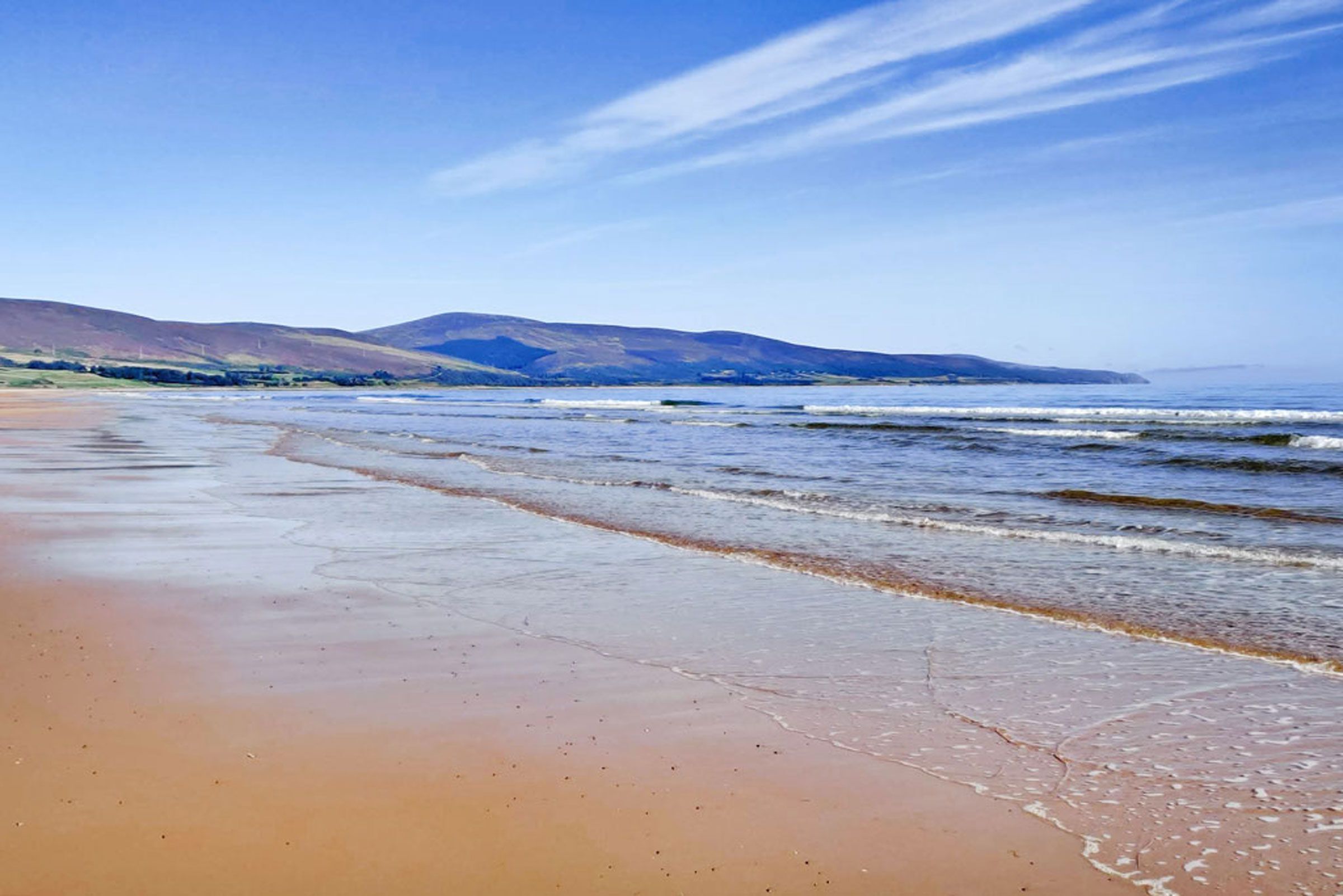 Brora beach is a mile of yellow sand, with a footpath winding its way from the harbour, up the river to picturesque Loch Brora.
