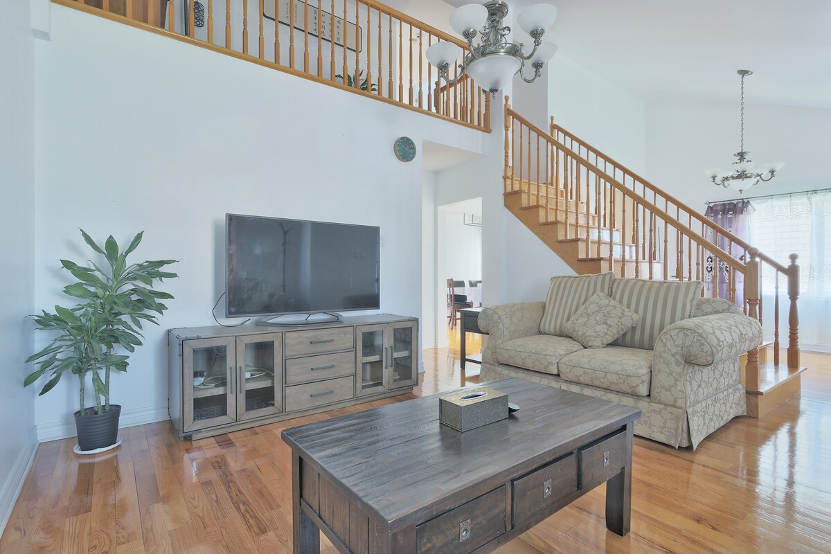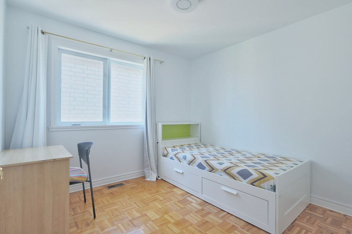 Bright, roomy, and comfortable place with private parking and direct access to public transport to downtown Montreal during rush hours and close to bus station. Close to Shopping Mall, Gas Station, and Grocery Store, so anything you could need is within a 3 km radius. The place has a large backyard, so pets are allowed depending on size.