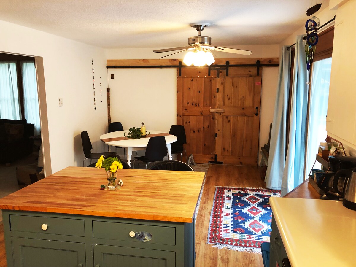 Counter for eating in the kitchen, plus a separate dining room off the kitchen. Everything you need for cooking!