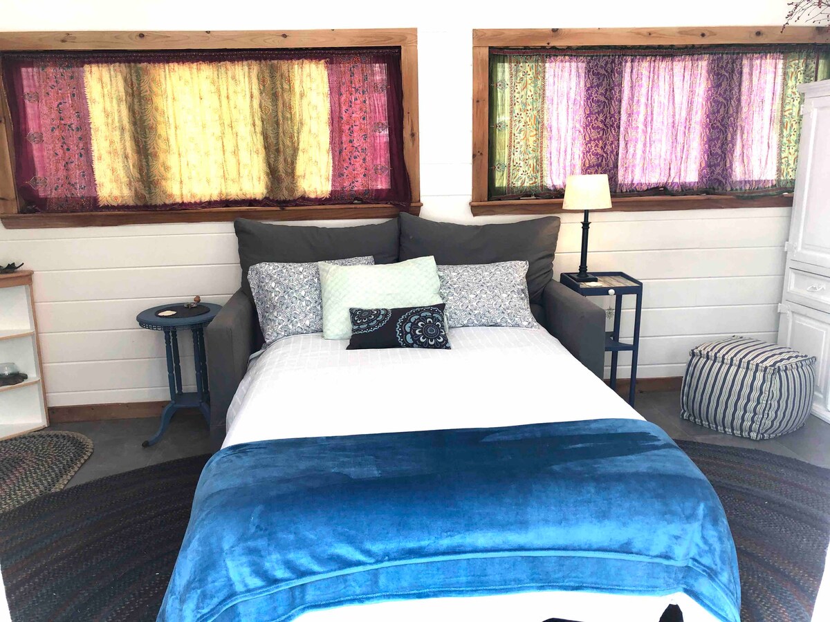 Are you more than 2 people? Please note that the space can accommodate 1 extra person—adult or child—with a comfy twin floor mattress and half bath on the first floor, but that this living area is not separated from the upstairs bedroom area with a door, just stairs. This may make it work for some (like a family with a child) but not for 3 adults who prefer privacy. There is a $30 per night extra fee for the third person.
