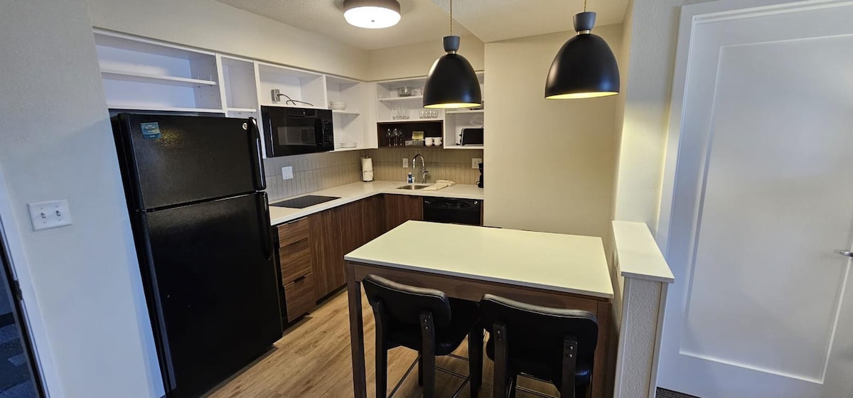 ✦ Your room is 475 sq. ft, equipped with complimentary toiletries, kitchen with basic amenities, 55-inch TV, available with Premium cable, ensuring cleanliness and comfort throughout your stay.