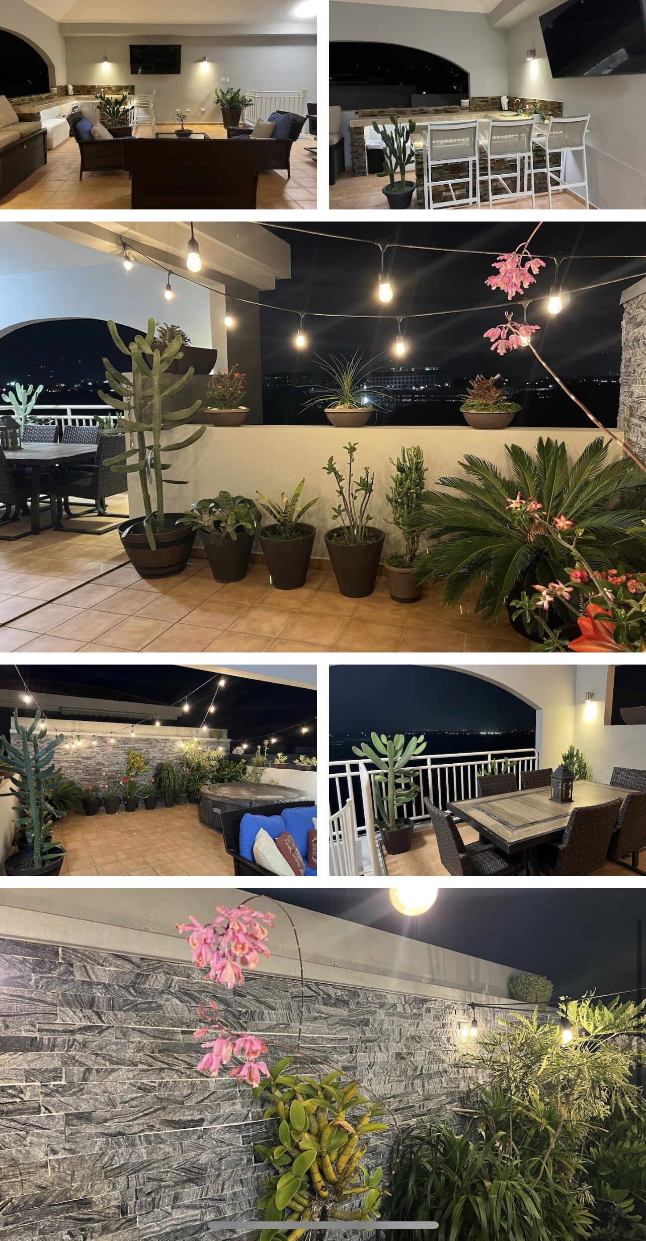 Campo Verde is a beautifully decorated 4,900 sq/ft villa. It's a 4 bedrooms with 1 king bed, 3 queen beds sleeps up to 9 guest. The open concept living room & dinning room will allow you to look out at the gorgeous views of La Sierra mountain range. There are 2 balconies, a large open TV room/living , an open kitchen with an island-- you'll love this house.