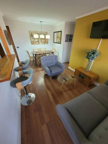 Hermoso departamento completo offers accommodations in Chorrillos, 2.5 miles from Zorros del Desierto Stadium and 13 miles from Chuquicamata. This property offers access to a terrace, free private parking, and free Wifi. The apartment is composed of 1 bedroom, a fully equipped kitchen, and 1 bathroom. A flat-screen TV is available. El Loa Airport is 4.3 miles from the property.