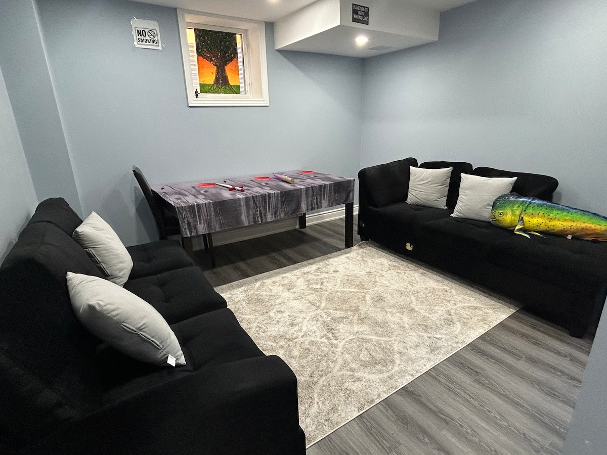 Cozy 3BR Caledon Basement Suite with Private Access, Backyard Basketball Court, Full Kitchen, WiFi, Laundry, 5 Mins to Brampton, Family Friendly, Near Trails & Parks! is located in Caledon, just 13 miles from Mississauga Convention Center and 23 miles from Aviva Centre. Among the facilities at this property are luggage storage space and private check-in and check-out, along with free Wifi throughout the property. Outdoor seating is also available at the apartment. The air-conditioned apartment consists of 3 bedrooms, a living room, a fully equipped kitchen with a dishwasher and a coffee machine, and 2 bathrooms with a bath and a hair dryer. Towels and bed linen are available in the apartment. This apartment is allergy-free and non-smoking. Outdoor play equipment is also available at Cozy 3BR Caledon Basement Suite with Private Access, Backyard Basketball Court, Full Kitchen, WiFi, Laundry, 5 Mins to Brampton, Family Friendly, Near Trails & Parks!, while guests can also relax on the sun terrace. York University is 24 miles from the accommodation, while Vaughan Mills Shopping Centre is 24 miles from the property. Toronto Pearson International Airport is 13 miles away.