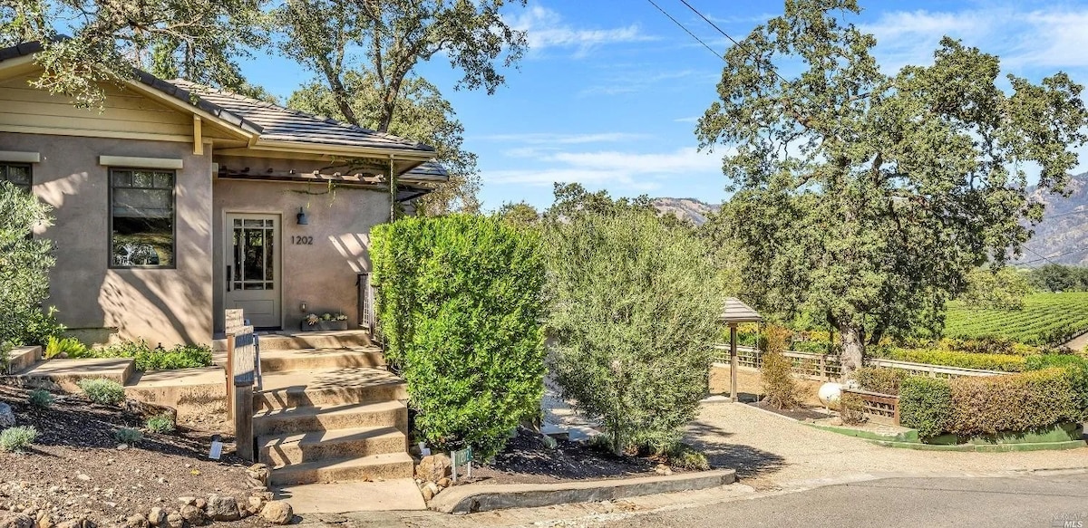 Discover the perfect home in the heart of Napa Valley, conveniently situated just a 10-minute stroll from downtown Calistoga. Our charming cottage boasts 2 cozy bedrooms and 1 modern bath, complete with numerous new amenities such as a fully-equipped kitchen and a 50-bottle wine fridge. Indulge in the home's extra-large private backyard, complete with a delightful patio area and a gas BBQ, ideal for relishing the best of California's outdoor lifestyle.
