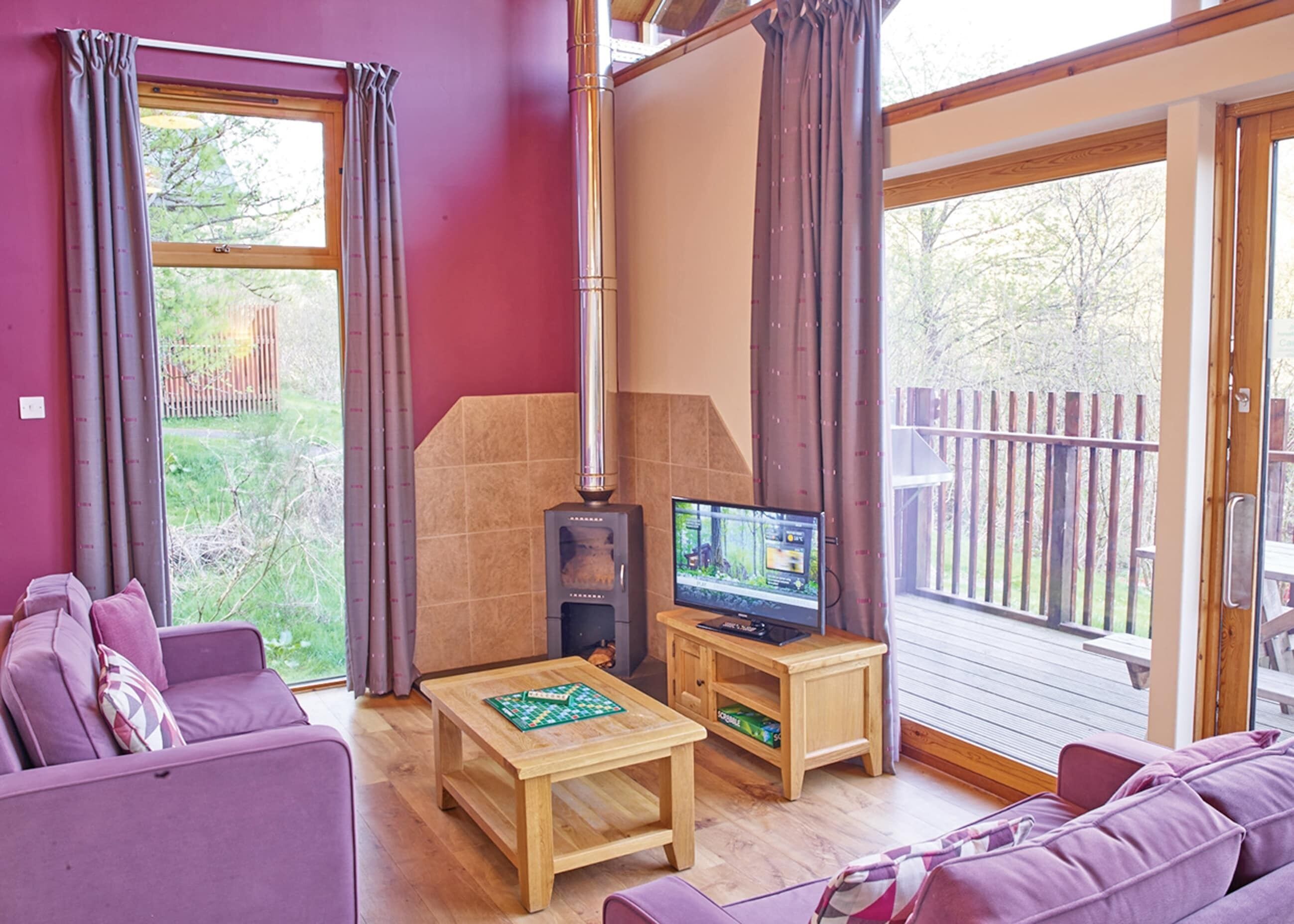 Luxurious and contemporary lodge with one double with ensuite shower and one twin. Lochside setting. Bathroom. Bathrobes in master bedroom. Decking with outdoor hot tub.. Located among the scenic lochs and mountains of the Trossachs, this beautiful setting is overlooked by the majestic Ben Ledi, which provides a stunning backdrop to the cabins which are all nestled between the heart of the forest and the banks of Loch Lubnaig. Breathtaking views abound, and being set entirely within the Forestry Commision estate, the area is a paradise for lovers of nature and those looking for complete relaxation from the stresses of modern day life.