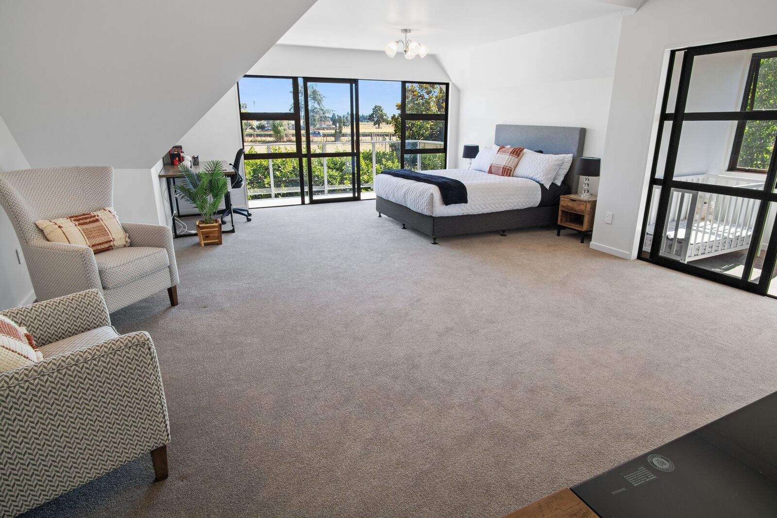 Walking through the bifold doors into the outdoor alfresco kitchen, you will find a Webber BBQ, gas hob, deep sinks and an amazing rimu worktop. Cutlery, pots, pans, crockery & glassware are all supplied and nestled within the private dining space. Enjoy cooking or dining day or night with the fantastic sensor lighting, comfy outdoor dining table protected from the elements to enjoy your meals in or to pour yourself a glass of wine and relax.