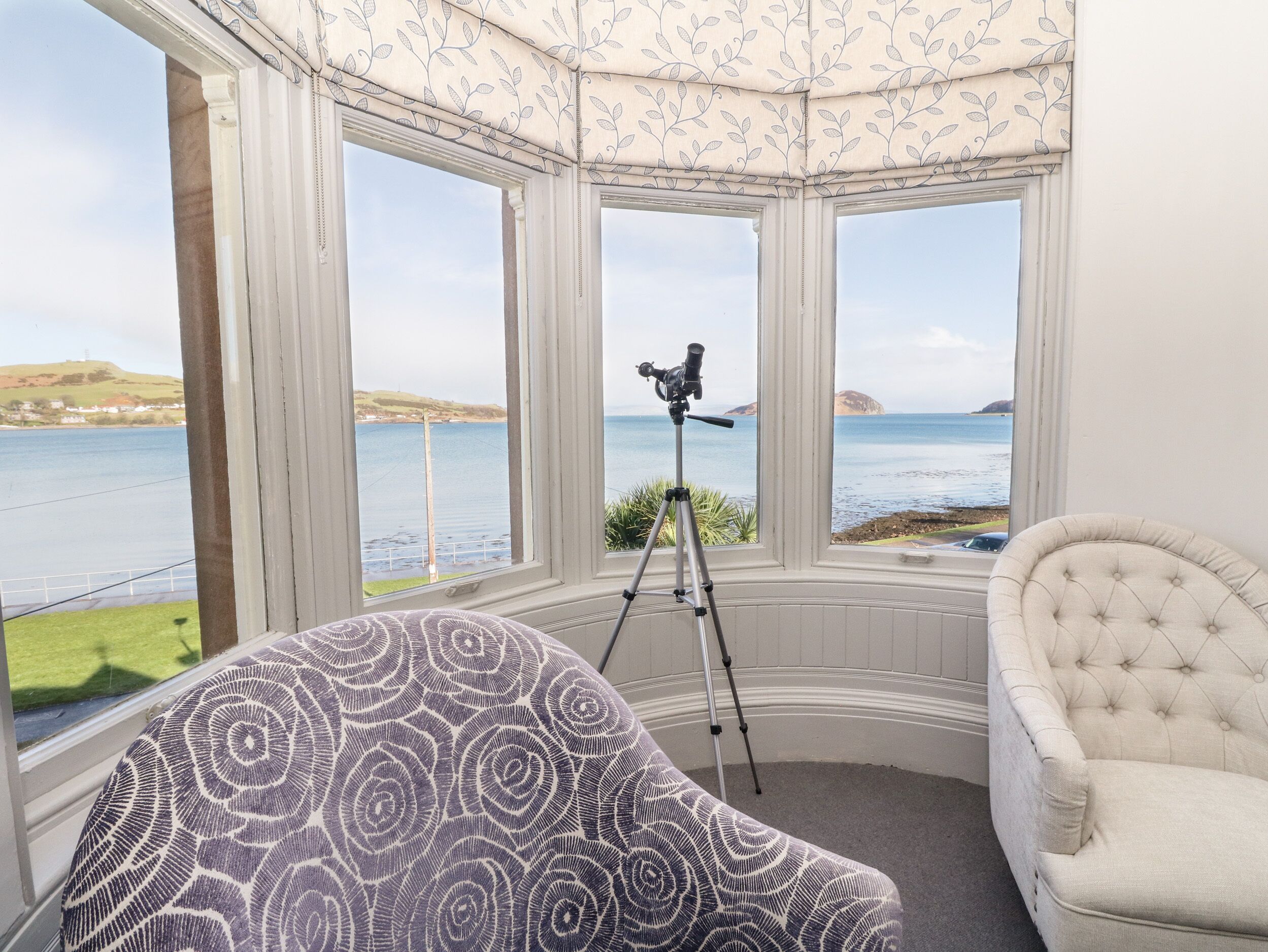 The living room features a large bay window with panaromic view of Campbeltown Loch.